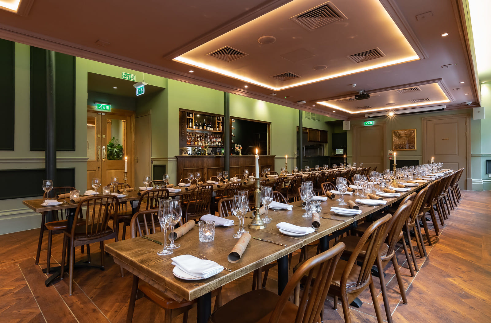 The interiors are an elegant mix of the old and new, and a spacious pre-function area with a feature bar leads into the main room which includes everything you need for a great event from screens and projectors to colour-changing down lighters on the pillars.