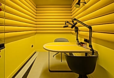 Located in the Northern Quarter, Outset is ideal for podcasts, live streaming, voice-over and video recordings. The 800-square-foot fully equipped, acoustically treated studio can host up to 20 people, and on-site technicians ensure a smooth running if you need their know-how. Outset offers 4k cameras, instant audio and video syncing, LED lighting, and contemporary, minimalist furnishings.