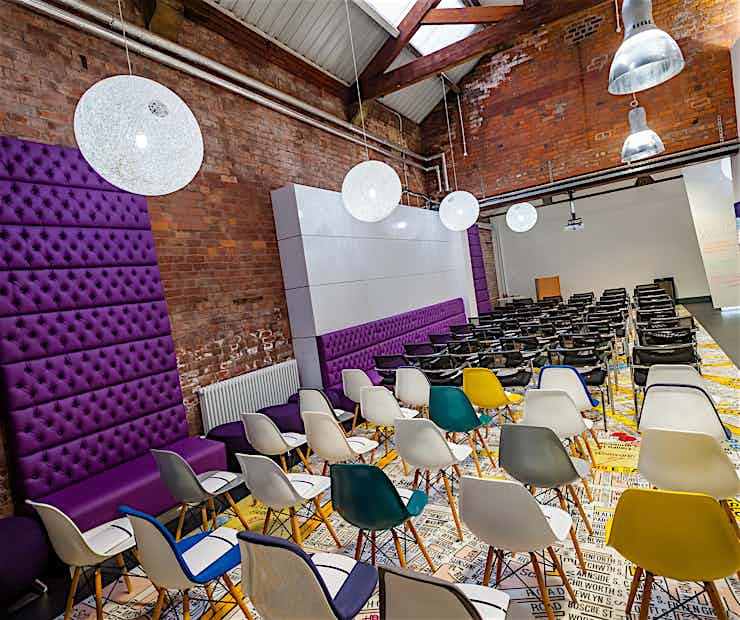 Located in the Northern Quarter, Outset is ideal for podcasts, live streaming, voice-over and video recordings. The 800-square-foot fully equipped, acoustically treated studio can host up to 20 people, and on-site technicians ensure a smooth running if you need their know-how. Outset offers 4k cameras, instant audio and video syncing, LED lighting, and contemporary, minimalist furnishings.