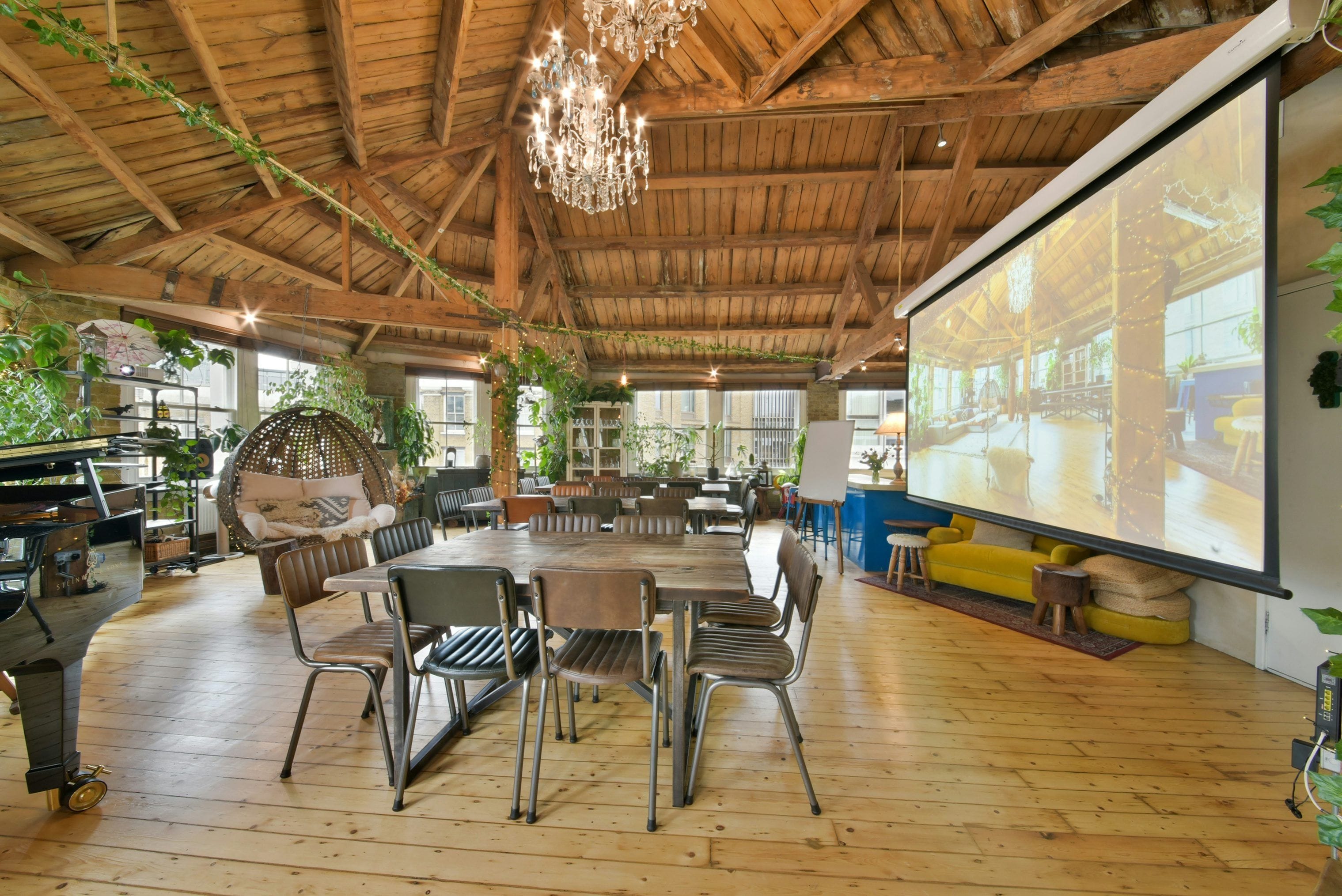 Shoreditch Treehouse is a beautiful & inspiring space designed for better meetings. At Shoreditch Treehouse, we have carefully designed an environment that blends professionalism with a warm, authentic atmosphere. Our goal is to help your team feel at ease, making your day both enjoyable and productive. Renowned as one of the most Instagrammable spots in Shoreditch, our venue features high ceilings, lush greenery, and 12 large sash windows that bathe the room in natural sunlight throughout the day. With a fully equipped kitchen, numerous breakout spaces, flexible layout options, and a 3 metre screen for presenting; Shoreditch Treehouse is the ideal setting for productive team meetings, away days, workshops, and product launches. And yes - we're also dog friendly 🐾