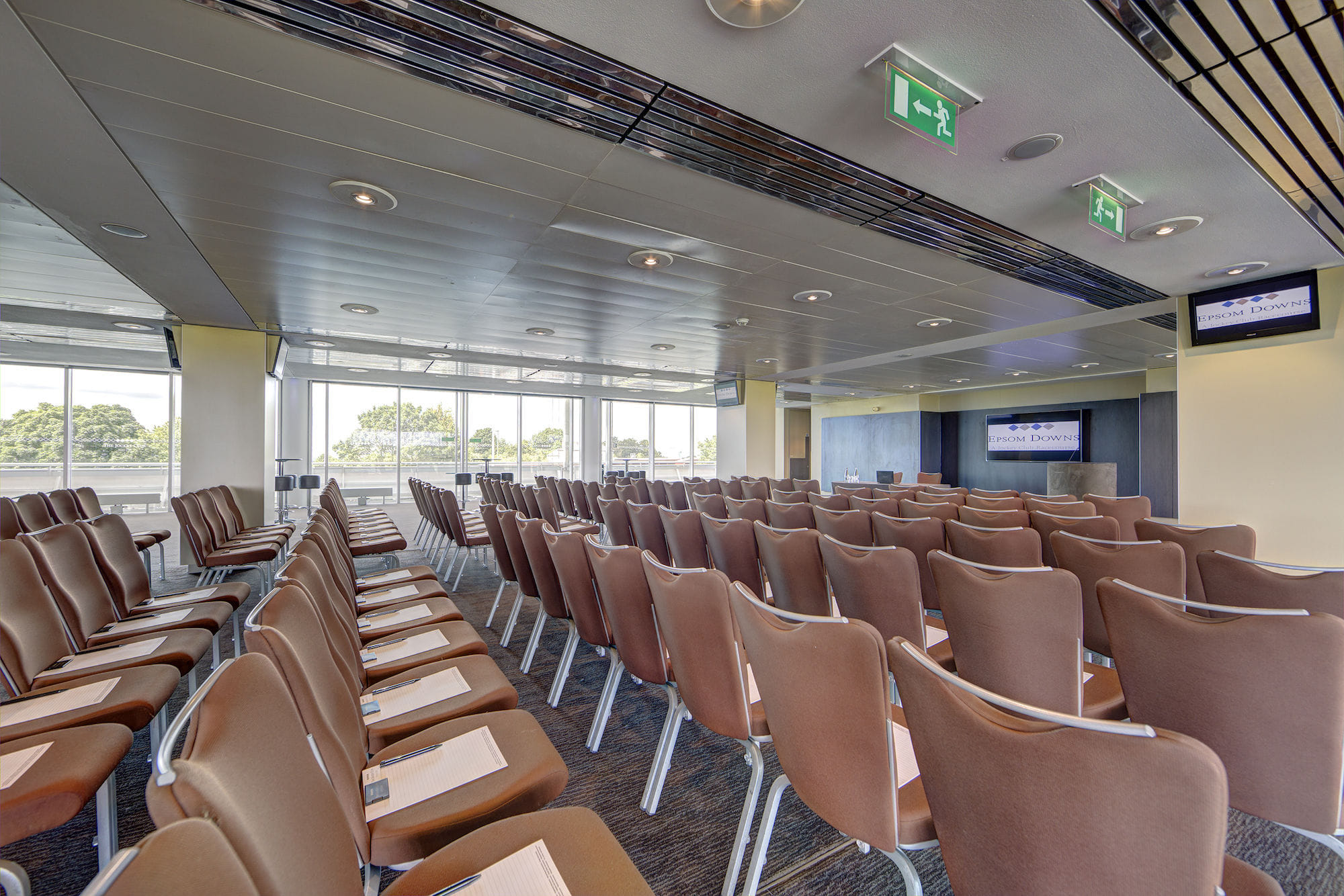 **With an open plan Space ideal for an array of events, The Blue Riband Room is a top choice for hire** Overlooking Epsom Downs Racecourse, on the first floor of the Queen’s Stand, the Blue Riband Room is fully AV integrated to offer a sophisticated conferencing Space. Complemented by high ceilings and plenty of natural light, organisers can be sure they are booking a venue tailored to the needs of the meetings market. Offering plush furnishings and modern decor, this Space is spectacular as well as highly convenient. The Blue Riband Room is also well-suited to small exhibitions and seated dinners, so whatever the event, The Blue Riband Room can accommodate. With the stunning backdrop of Epsom Downs Racecourse serving as your setting, you won't be disappointed with the hire of this event Space.