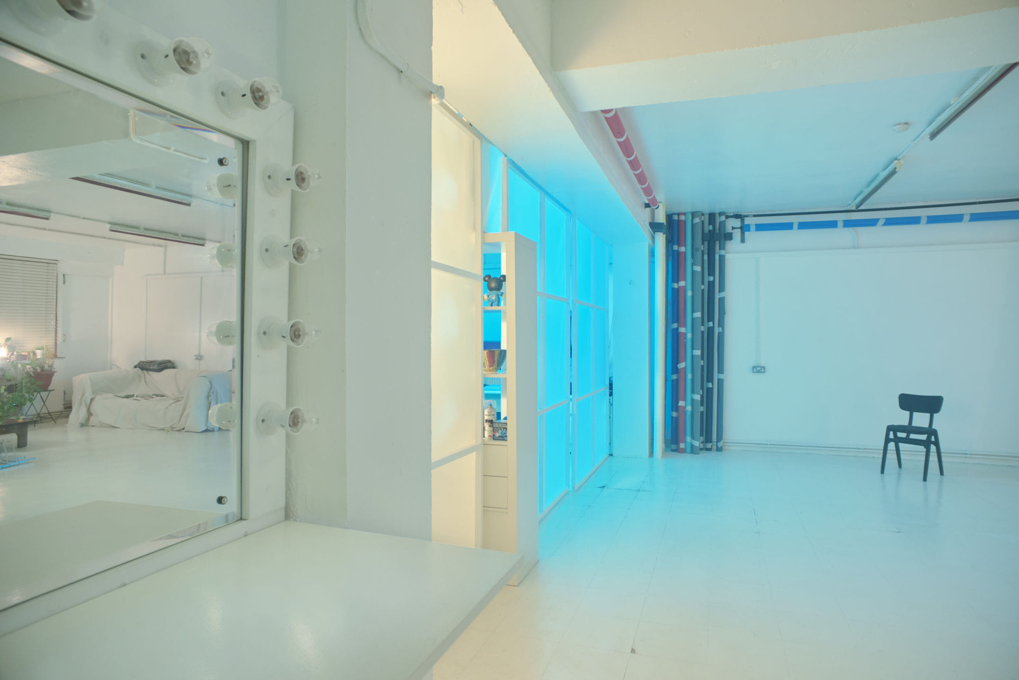 **Unit B Studio is a friendly, affordable and well equipped photo studio available to hire in East London.** The Studio is minutes away from both Aldgate East and Whitechapel tube stations, close to Brick Lane, Spitalfields Market and the Whitechapel Gallery. Covering an area of 900 sq ft there’s plenty of room for fashion, e-commerce and product photography. Flash heads with a variety of light shaping tools are available, coloramas, a large Hollywood mirror, daylight and blackout options, a kitchenette and a small terrace for a little fresh air now and then.
