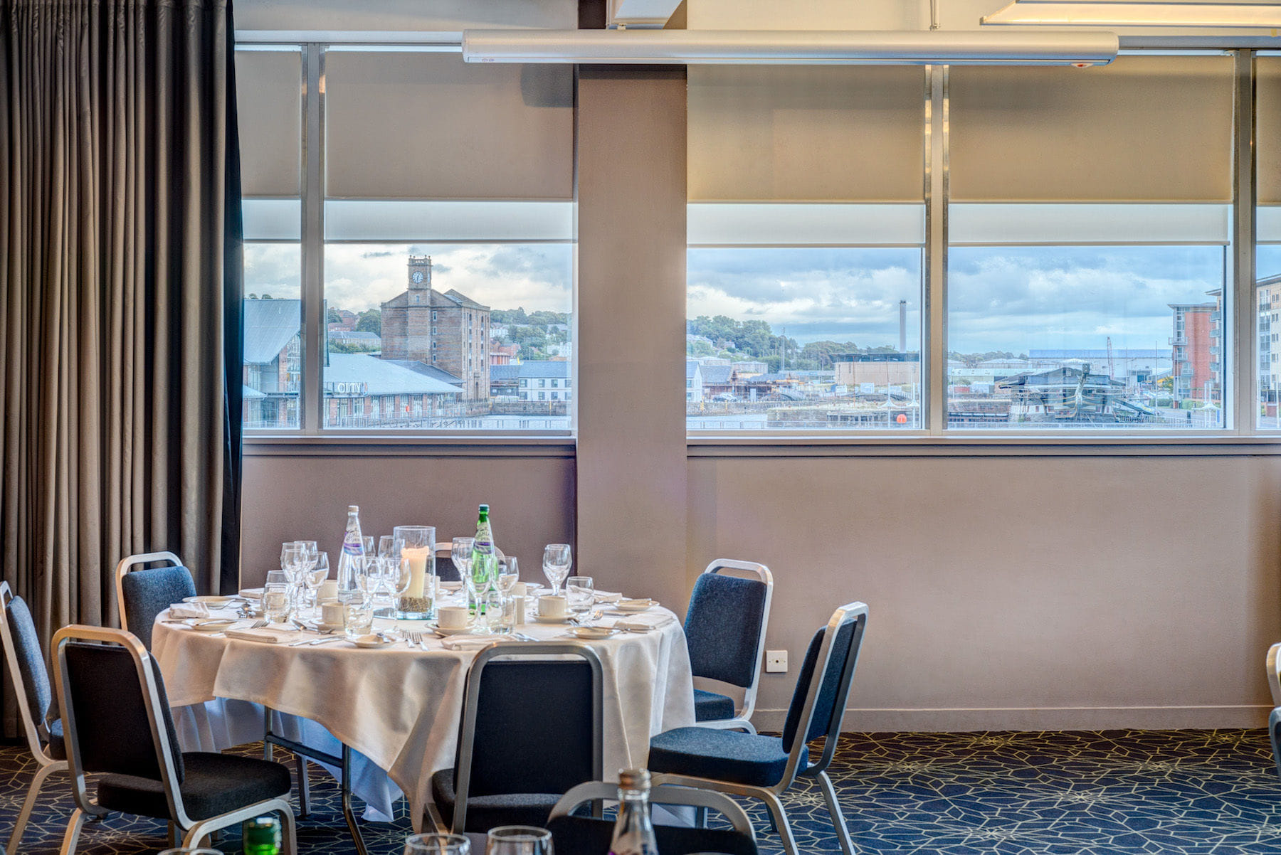 **The Art Gallery at Apex City Quay Hotel & Spa is a modern conference venue available to hire in Dundee.** The Apex City Quay Hotel & Spa is frequently rated number one in Dundee by Guests on TripAdvisor and combines a modern place to stay with award-winning spa facilities, a restaurant, bar and meeting rooms. It’s a ten-minute stroll from RRS Discovery, Caird Hall, high-street shops and the new V&A Museum. A large function room suited to weddings which can be divided into two rooms as a breakout if needed.