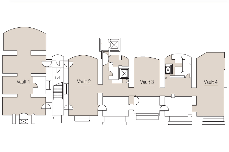 Originally river-front warehouses, the Vaults display exposed 18th-century brickwork, offering a striking contrast to the splendor of the rooms above. There are 4 interconnecting Vaults providing a great backdrop for parties, dinners, receptions, catering and breakout space, exhibitions and product launches. There is a semi-private entrance leading to the Vaults on Durham House Street, available for events in the Vaults. This along with a private cloakroom and bathrooms provides a more exclusive feel to any event. The spaces feature plenty of rigging points and white walls for vinyl to brand the space. The glass doors at the entrance can also be branded in vinyl to personalise the space and give it an exclusive feel right from the moments guests arrive. The Vaults feature a built-in PA system throughout, to play background music, and an overhead projector in Vault 4 to utilise to display photos, videos or presentations. Additionally the Vaults are fully air conditioned and accessible. There is a loading bay at the end of the Vaults providing very easy access for suppliers to load in and out.