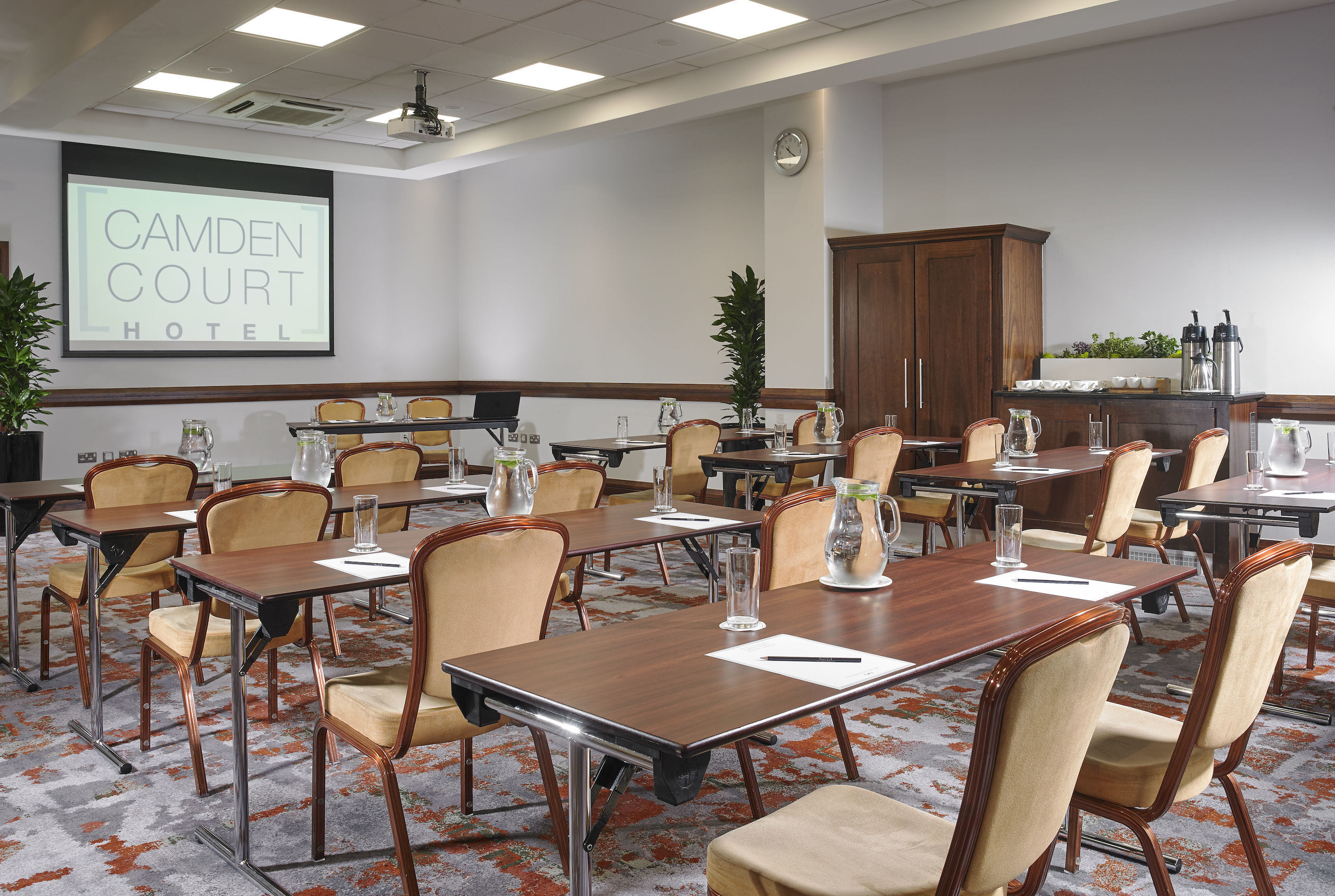 **The Abbey & Gaiety provide a stunning meeting room hire at Dublin's Camden Court Hotel.** Camden Court Hotel is the ideal choice for businesses looking to arrange a meeting or conference in Dublin City Centre. The venue has 12 state-of-the-art meeting rooms that are perfectly equipped for your meeting. Enjoy free WiFi, natural daylight, state of the art equipment and flexible layouts. This perfect location coupled with our dedicated team 'Meeting Excellence' are delighted to assist you when planning your meeting or event. The modern 4-star hotel offers 251 well-appointed en-suite guest bedrooms including two beautifully decorated Suites. These fresh and contemporary bedrooms include high standard amenities with flat screen Smart TV’s, in-room safety deposit boxes and luxurious toiletries. The hotel also offers an opportunity for Guests to revive or unwind in Camden Court Fitness, a fully facilitated leisure centre that includes a gym, 16-metre swimming pool, jacuzzi, sauna and steam room. Celebrating 21 years in business, Camden Court Hotel has become an emblem of Hospitality and Excellence in Dublin’s City Centre. Located minutes from Grafton Street and placed on the exuberant Camden Street, the hotel is at the centre of it all. With its optimal location in the heart of the city, the hotel is conveniently linked to all public transport systems, including Dublin Bus, Airlink Express and the Luas tram system. Camden Court Hotel also boasts a secure city centre carpark and is only 30 minutes from Dublin Airport.