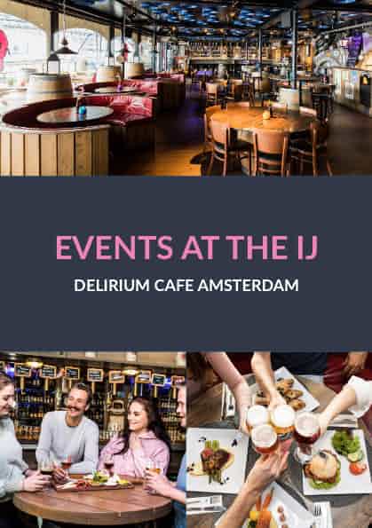 Delirium Café Amsterdam is een grote evenementenlocatie aan de IJ-rivier in Amsterdam. Er zijn drie verschillende bars te huur samen met een ruim terras, waardoor u zowel kleine bedrijfsfeesten als een barbecue kan organiseren. Deze locatie biedt verschillende arrangementen aan voor groepen die aangepast kunnen worden aan uw wensen. Dus, als u nog op zoek bent naar een locatie voor uw volgende borrel, evenement, bedrijfsfeest of diner dan is deze locatie aan het IJ iets voor u.