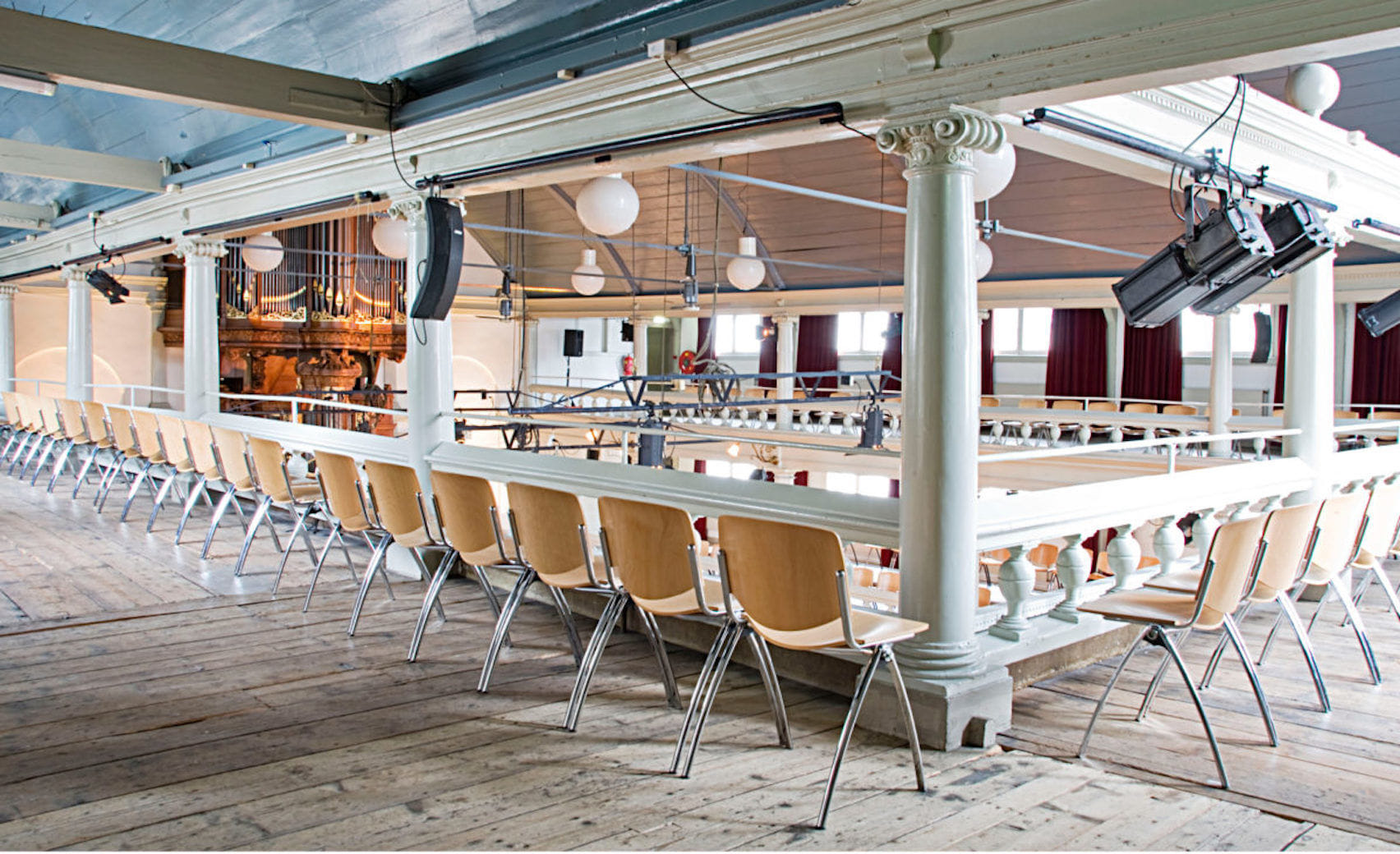 Uniquely located in the heart of Amsterdam on the historic UNESCO World Heritage canals, Rode Hoed is a perfect venue for any type of event: from board meetings to award ceremonies. The building dates back to the 17th century when it served as a hiding church buried behind the façades of three old stately canal houses. Nowadays, Rode Hoed is known as a place for societal debates, symposia, literary and musical gatherings, as well as a multifunctional event venue. The magnificent Oosterhuiszaal, together with 5 atmospheric rooms, makes Rode Hoed perfect for conferences with breakout sessions, corporate events and gala nights. The ambiance of an old church combined with authentic interior elements and state-of-the-art technical facilities will make your event extra special.