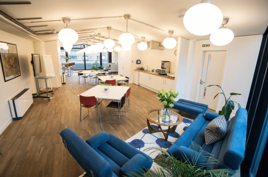 Penthouse b at Clerkenwell Green is a little bit special. Think somewhere between a Bond villain’s lair and Gio Ponti’s iconic Parco dei Principi hotel in Sorrento – stylish, striking, and designed to impress. With a full-length balcony and floor-to-ceiling glass on two sides, penthouse b is flooded with natural light and feels like an oasis of calm above the city. Flexible layouts make it ideal for workshops, training sessions or networking events. A private kitchen with hot drinks facilities, a fridge and plenty of snacks keeps energy levels up without breaking the flow. For presentations, the 86″ Ultra HD 4K LED TV ensures visuals that really wow. Penthouse b also connects to penthouse c – a cosy, James Bond-style study, perfect for private meetings or as a facilitator’s base.