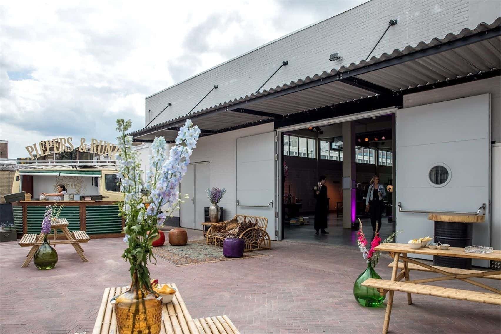 In an old peanut factory the versatility of the location is not limited to the appearance, but the ability to fit in seamlessly with the size of the company is a plus. Pakhuis West consists of four rooms, one of which is large and three smaller. These rooms can be used in any desired combination and can function independently. Pakhuis West also has a terrace of 300 square meters.
