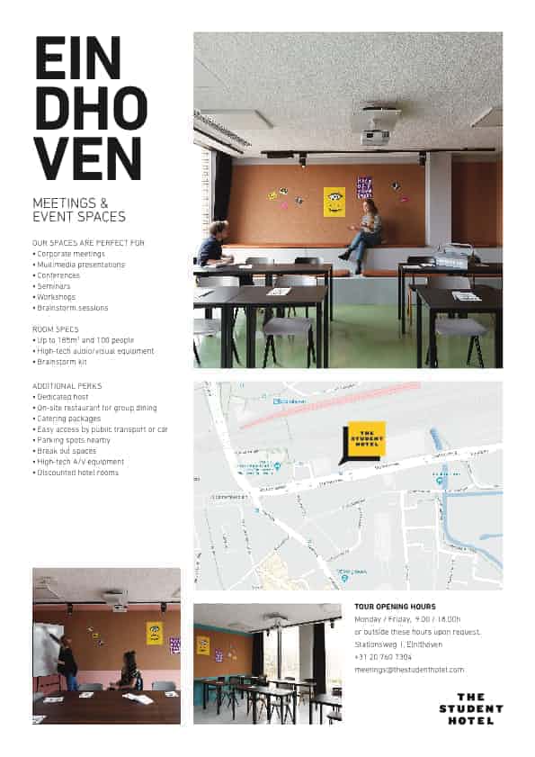 **Het populaire Restaurant in The Student Hotel Eindhoven is de perfecte locatie voor uw volgende privé-diner.** Organiseer uw volgende externe vergadering direct tegenover het centraal station van Eindhoven, zodat uw collega's de locatie gemakkelijk kunnen vinden. Boek een netwerkevenement, een innovatieve breakout-sessie, een eendaagse cursus in onze klas, een verzorgde werklunch of diner en cocktails met een gewaardeerde klant in ons bekroonde designhotel. Stap uit het treinstation van Eindhoven en u ziet de locatie direct. Aan de overkant van het station ligt dit full-service hotel met 400 kamers en een co-living gemeenschap voor studenten, reizigers en professionals. Het hotel heeft ook een restaurant en bar met 250 zitplaatsen, The Commons, die een hotspot voor fijnproevers in Eindhoven aan het worden is.