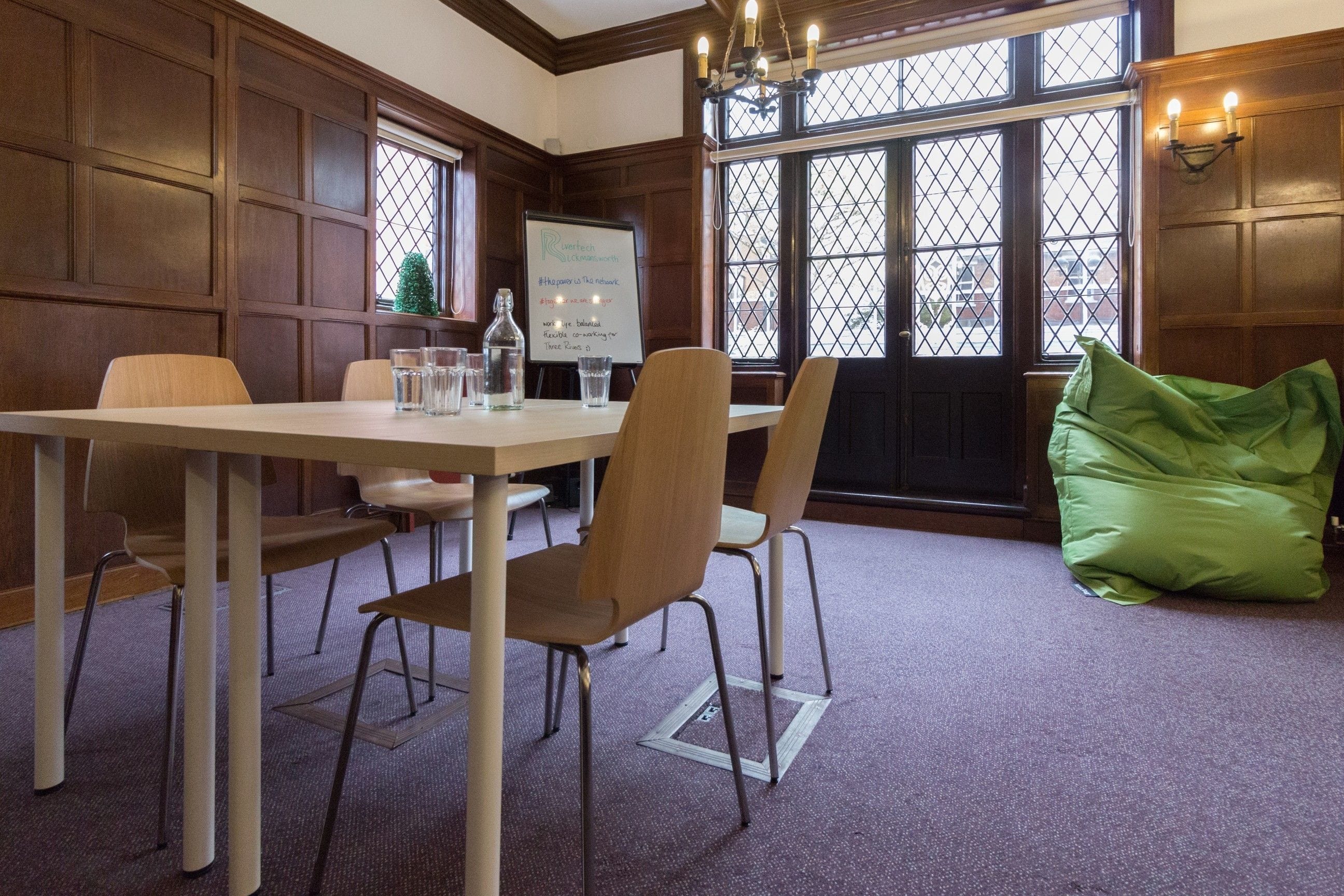 **William Penn at Rivertech is a stylish creative Space to hire for meetings, team away days and workshops in Rickmansworth.** By transforming under-utilised library and public Space in partnership with local Councils, Wimbletech CIC makes it possible for entrepreneurs to live good lives, to grow their businesses within Spaces that they love, around people they care about, whilst contributing and giving back to their local community. All Members have access to a Network of local, affordable meeting and event Spaces and they're pleased to share this network of Spaces with you. Perfect for your next professional team away day, meeting, meetup or Community event. Whether it's a full-day conference, workshop, team away day, meeting, meetup or networking happy hour, they’ve got you covered - and if you need help with the Marketing or promotion of your community event, they'll make sure to share details with all of their members as well as through their network of Community Partners. Need catering and/or food and drinks? They can provide or you choose to supply/bring your own. Discounts are available for local charities / third sector organisations and those looking for local venues for free Community events that benefit all.