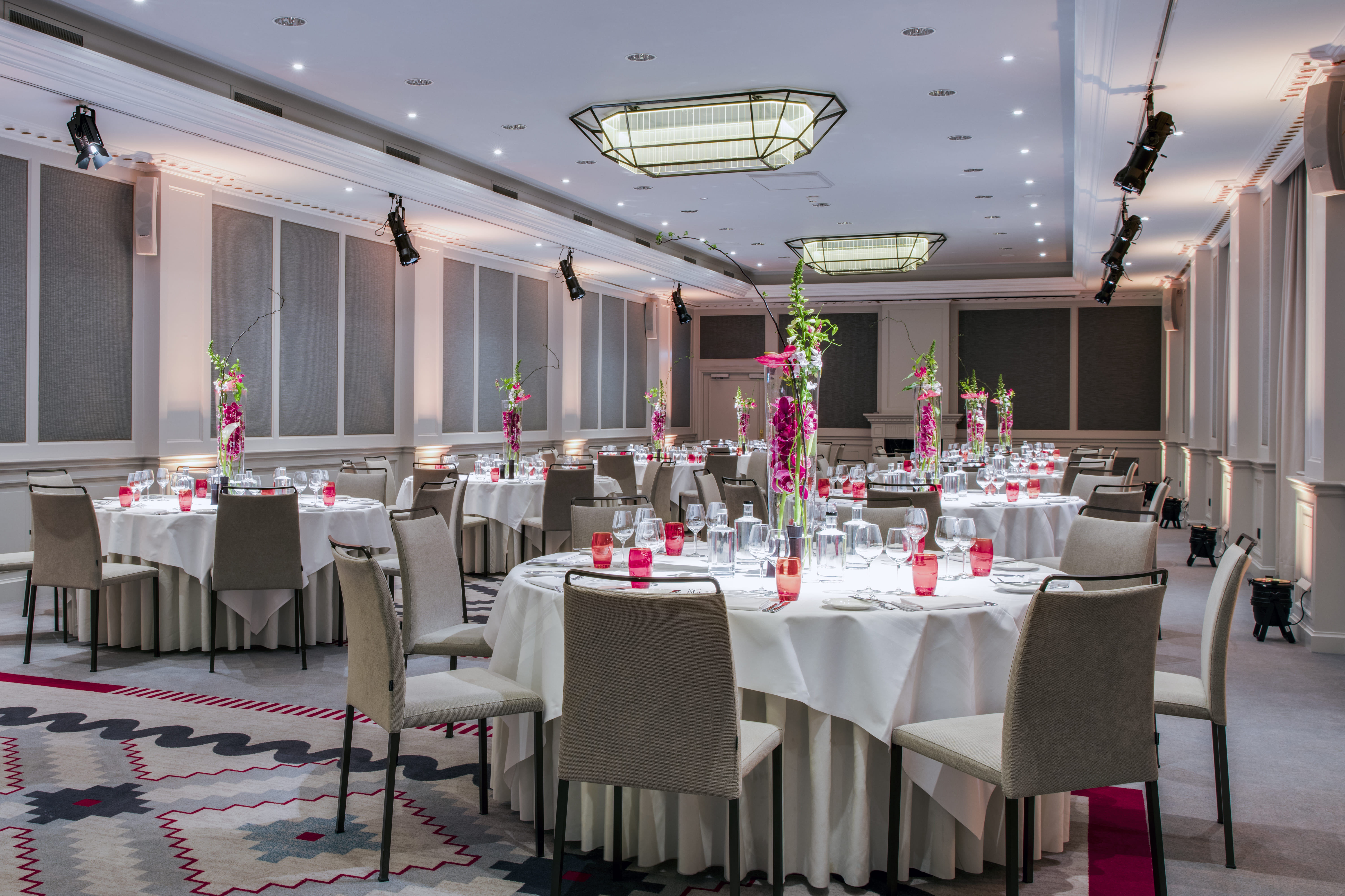 Ruby is a large meeting room with an surface area of 210m2 and a ceiling height of 3.60m. It has an elegant appearance with state of the art technology. This elegant room with mantelpiece, chandeliers, and natural daylight serves as the perfect backdrop for an intimate dinner or special meeting. This meeting room is standard equipped with a projector, flip chart and presentation case. Our Team is at your disposal if you have additional needs when it comes to audiovisual equipment. They can provide you with anything you prefer as our possibilities are limitless. Furthermore, you can make use of our free Wi-Fi access. Feel Safe at NH: NH Hotel Group launched Feel Safe at NH in collaboration with the SGS. As part of this, 10 protocols have been established for the safety of guests, participants and employees. With this, we guarantee that you can organize your meeting or event in all health and safety. Our F&B services are also adapted to the current situation. The loaded meeting room capacity is the standard one. In case that any COVID restriction or regulation applies to your request, the selected hotel will apply the corresponding restrictions during the quotation process. Based on destination, size and date of the event.