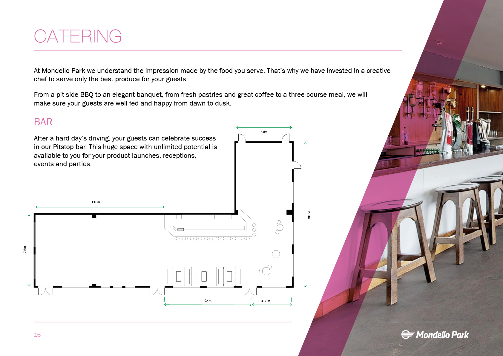 **The Mondello Park is located in Ireland, an hour from Dublin city centre** A stunning venue for your dinner, party or meeting. At Mondello Park, we understand the impression made by the food you serve, that's why we have invested in a creative chef to serve only the best to your customers. After a hard days driving your guests can celebrate success in our pitstop bar. This is a huge space with unlimited potential and is available to you for your product launches, receptions, events and parties.