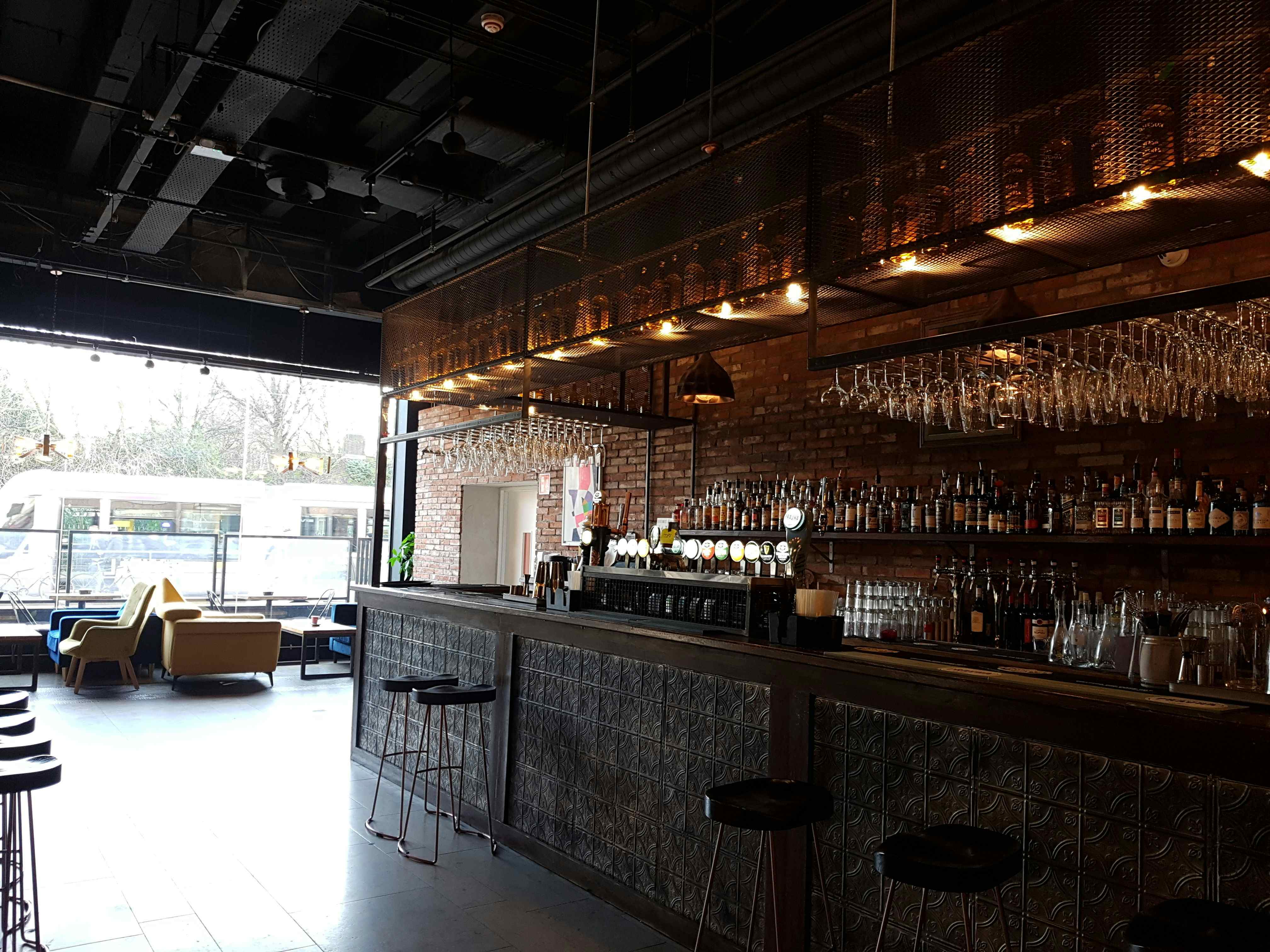 **The café bar is a carefully curated and combined affair, serving an extensive range of beers, wines and spirits along with a premium food menu from the on-site kitchen operated by our partners, Dublin Pizza Company.** The venue have created intimate alcoves, nooks, crannies and snugs to ensure a cosy feel for customers. There is one large 10 Meter main bar, along with a small 3 Meter speed bar that service this floor for both food and drink.