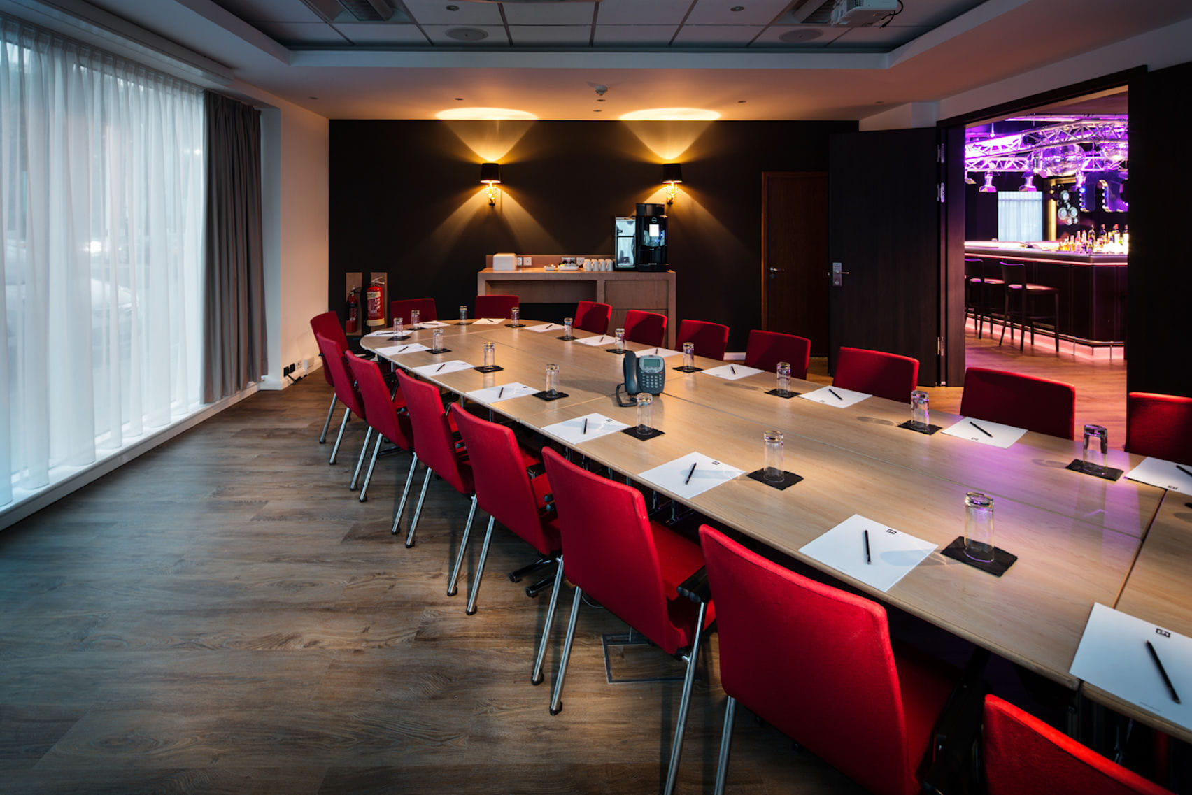 **Hire Penta 1 meeting room for a space which is easily accessible and full of natural light.** Penta 1 is located on the ground floor of the hotel, is fully accessible and has natural daylight and air-conditioning. Penta 1 can accommodate up to 40 people theatre style and 22 people in boardroom and has a built-in screen and LCD projector which are inlcuded within the room hire or day delegate rate.