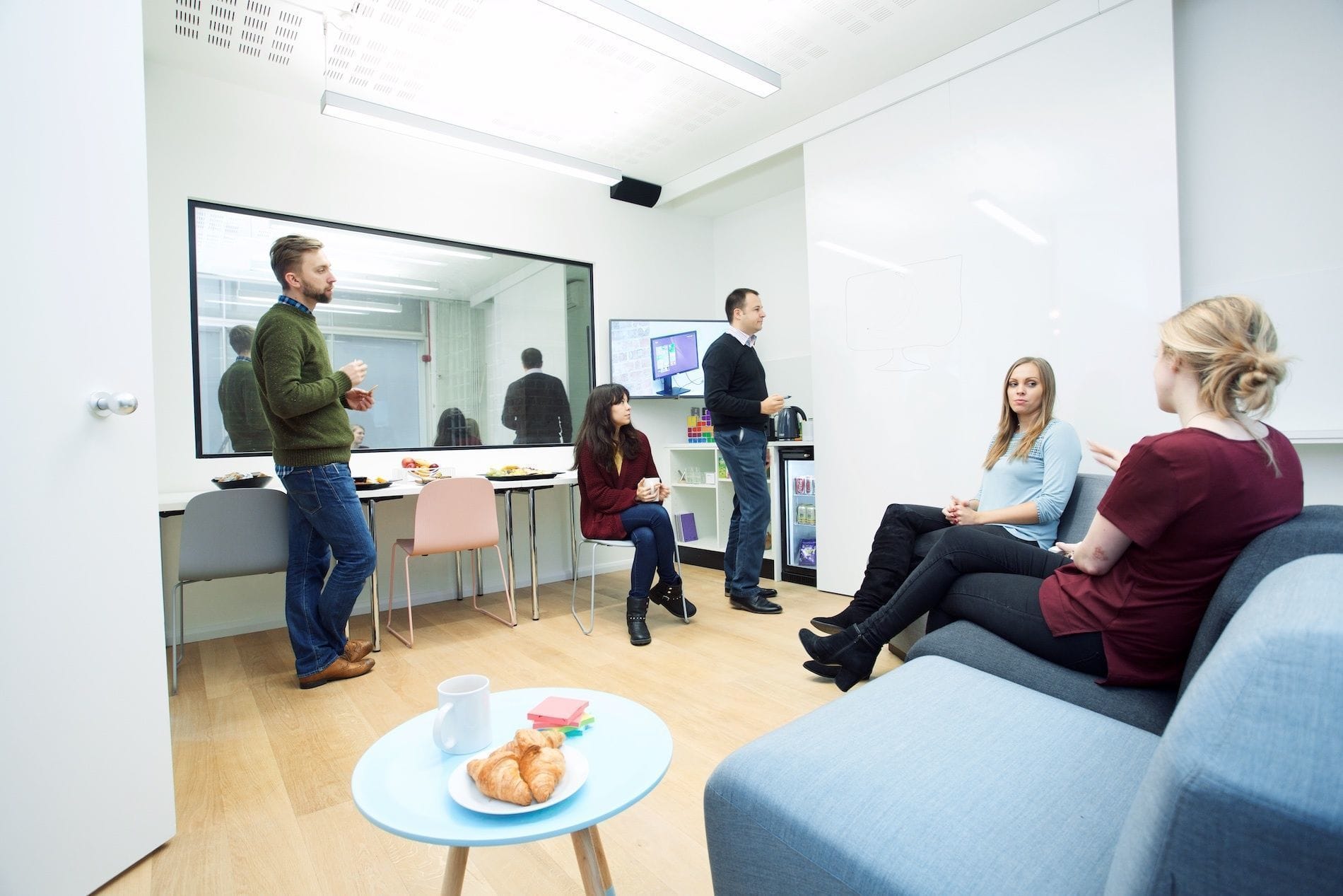 **Hire The Workshop at Sutherland Labs, a cool and productive Space perfect for workshops or use as a creative workspace.** A clean, bright space that lends itself to maximum productivity, ideal for usability testing and focus groups, with a one-way mirror for observers, a large TV screen and a range of gaming platforms. This would be perfect for creative meetings or workshops that will get your team being productive. Any event held at Sutherland Labs is bound to be a successful one and has everything you need to host a flawless event. A productive space, ideal for focus groups or usability testing. Large one way mirror with room for 8 observers - Flexible layout and modular furniture - Large white boards for analysis - Large HD TV’s in the observation room with camera controls in the -room for complete client control Full range of TV and gaming platforms -Adjoining fully manned reception