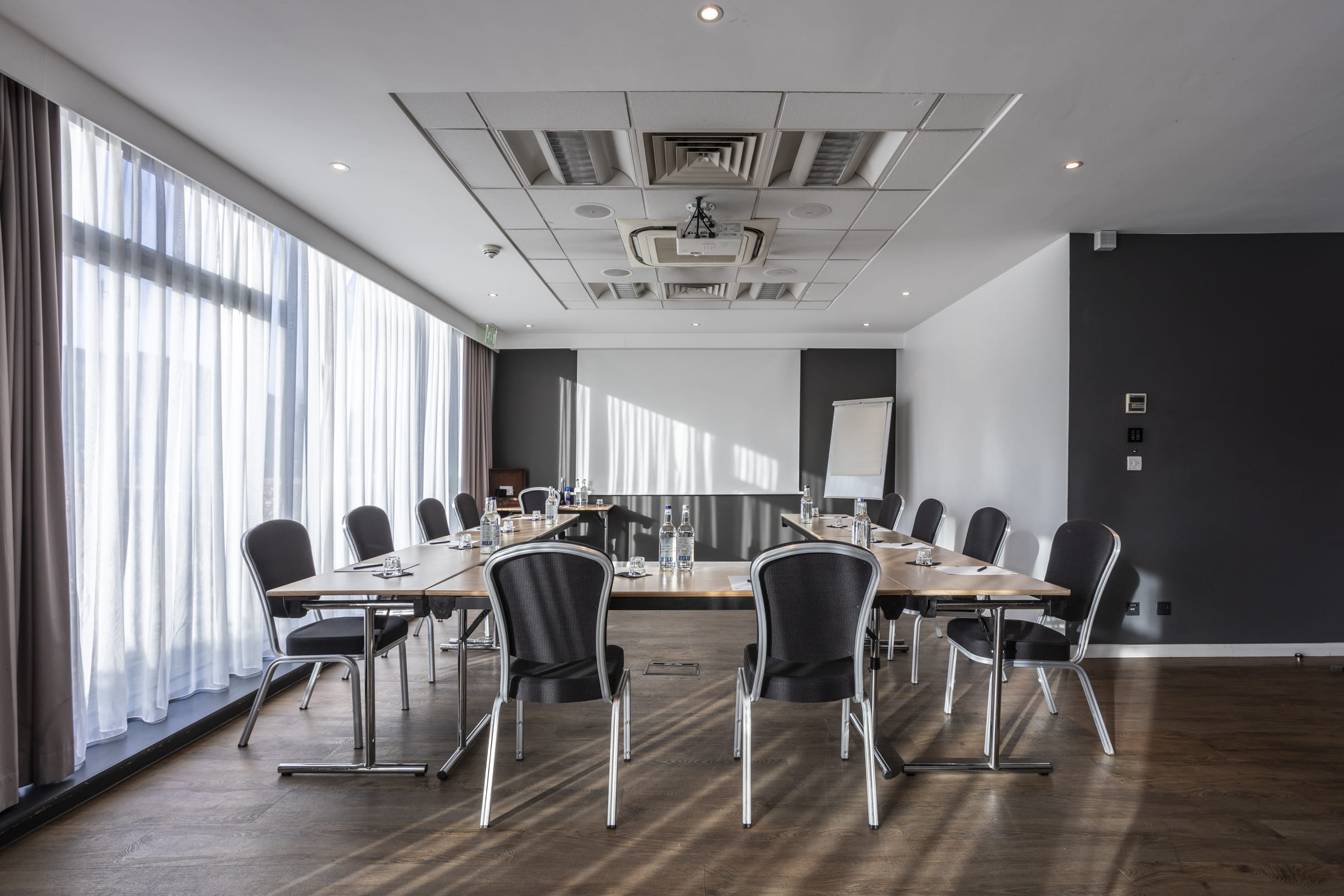 **Pentahotel Derby is the perfect spot for your next meeting room hire.** - Floor to ceiling windows - Air conditioning - Built in screen and projector - Versatile meeting room space for a variety of set up styles - Serviced by a meeting room foyer where breakouts and refreshments are served - Located on the ground floor - Quirky pentalounge for breakout space and post-meeting dinner/drinks