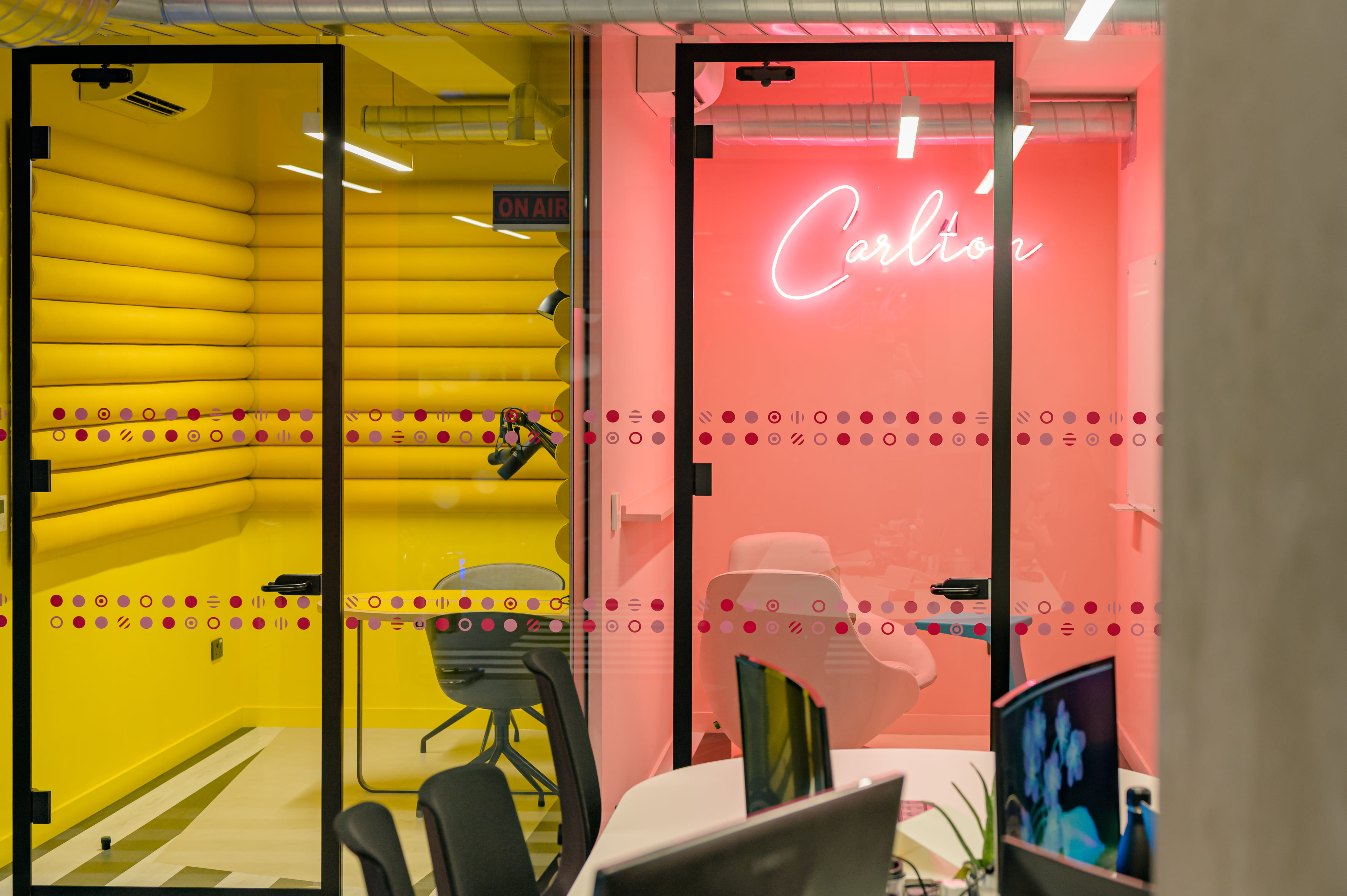 **Taking its name from the Memphis era, Carlton is the perfect meeting Space for interviews, reviews and catchups.** Equipped with HD display, microphone, wireless connectivity, whiteboard and the must-haves: tea, coffee and water. Capacity displayed reflects 1m social distancing measures.