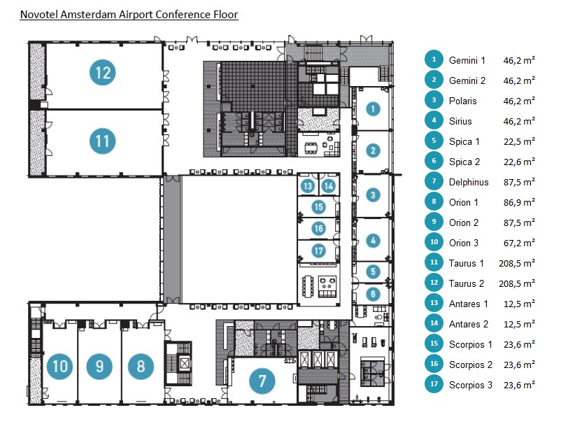 Novotel Amsterdam Schiphol Airport is located on business park 20/20 in Hoofddorp, close to Schiphol International Airport and Amsterdam City Centre. The hotel features 314 modern and spacious rooms . Novotel Amsterdam Schiphol Airport provides 1300 M2 of meeting space divided over 17 conference rooms which are all featured with natural daylight. The largest conference room can accommodate 65 attendees for your meeting , also they offer 5 boardrooms and 4 spacious meeting spaces which can be easily used as breakout rooms for your event.