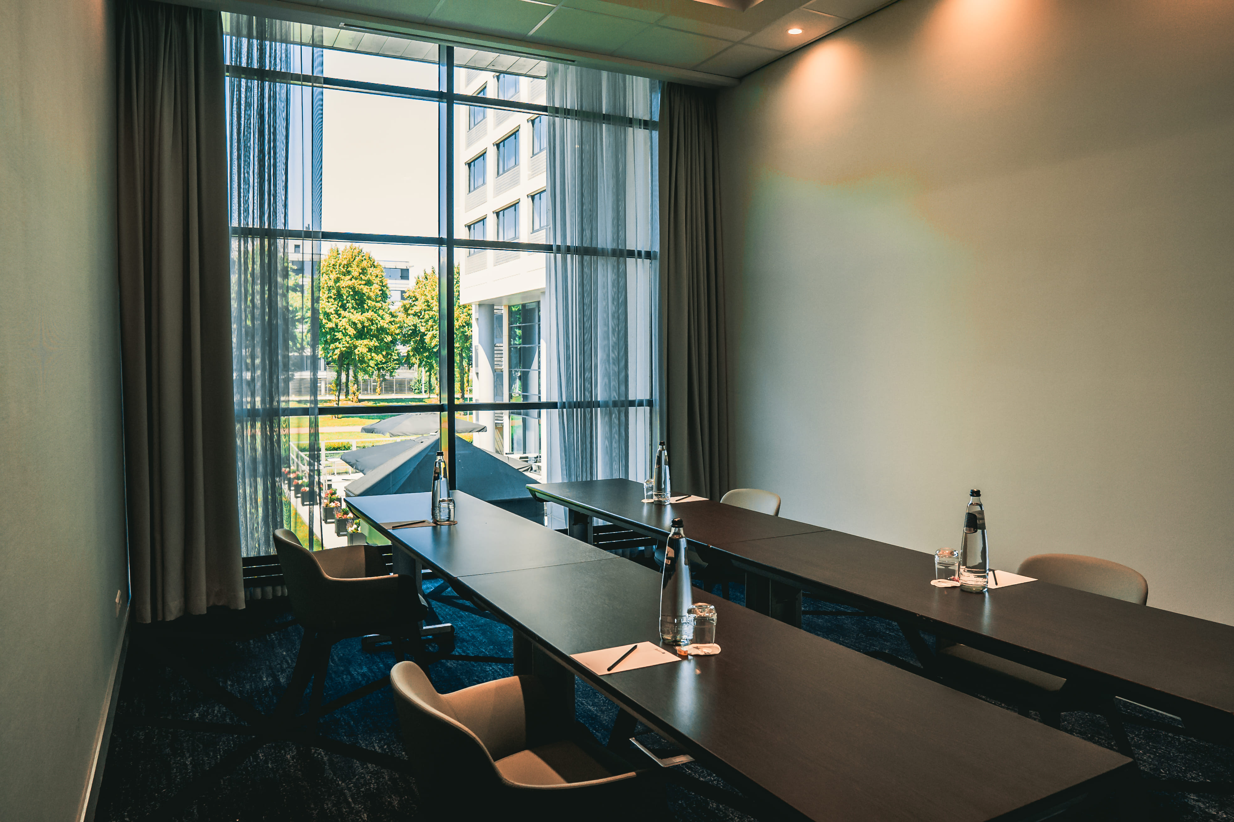 The Limburg room is conveniently located on the ground floor of the hotel, featuring natural daylight and air conditioning and is equipped with a 75” LED screen and soundbar. The room measures 6 by 4,3m with a ceiling height of 3,9m and is ideal for small boardroom meetings or for office space.