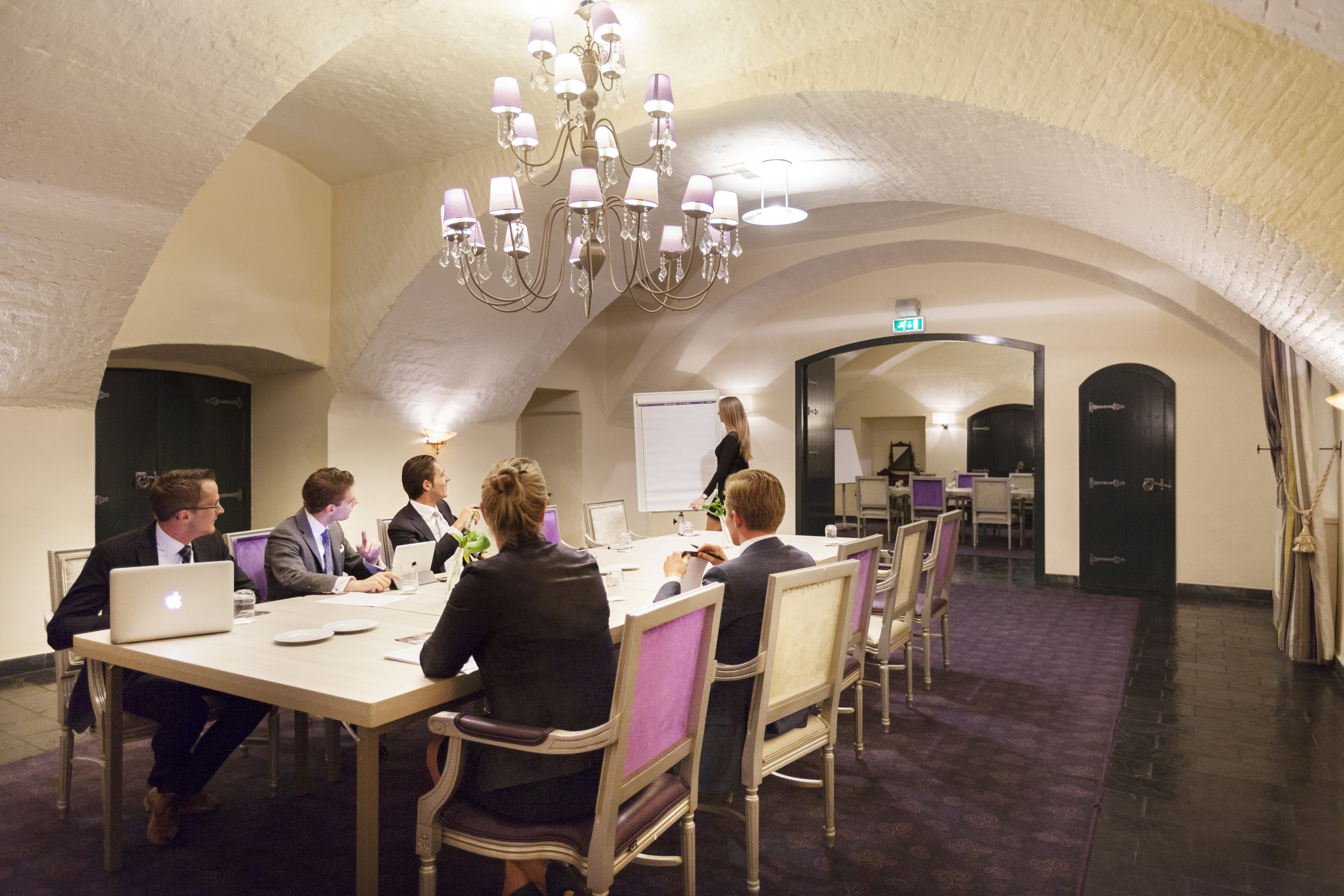 A successful business meeting starts at the ideal location. Hotel Kasteel Bloemendal is the perfect meeting place in the South Limburg hills. In the atmospheric ambiance, relaxation and relaxation go hand in hand. The perfect meeting venue in Southern Limburg. The castle offers 5 halls, all suitable for us as plenary or break out rooms. All halls are equipped with a projection screen and wireless internet(WI-FI).All possible audiovisual equipment can be arranged,if required with professional assitance for you. The authentic castle gardens lend themselves for a team building programm. The green surroundings of Vaals are excellent to combine conferences with any leisure and/orteam building activities such as African drumming workshopora GPS walk inthe woods.
