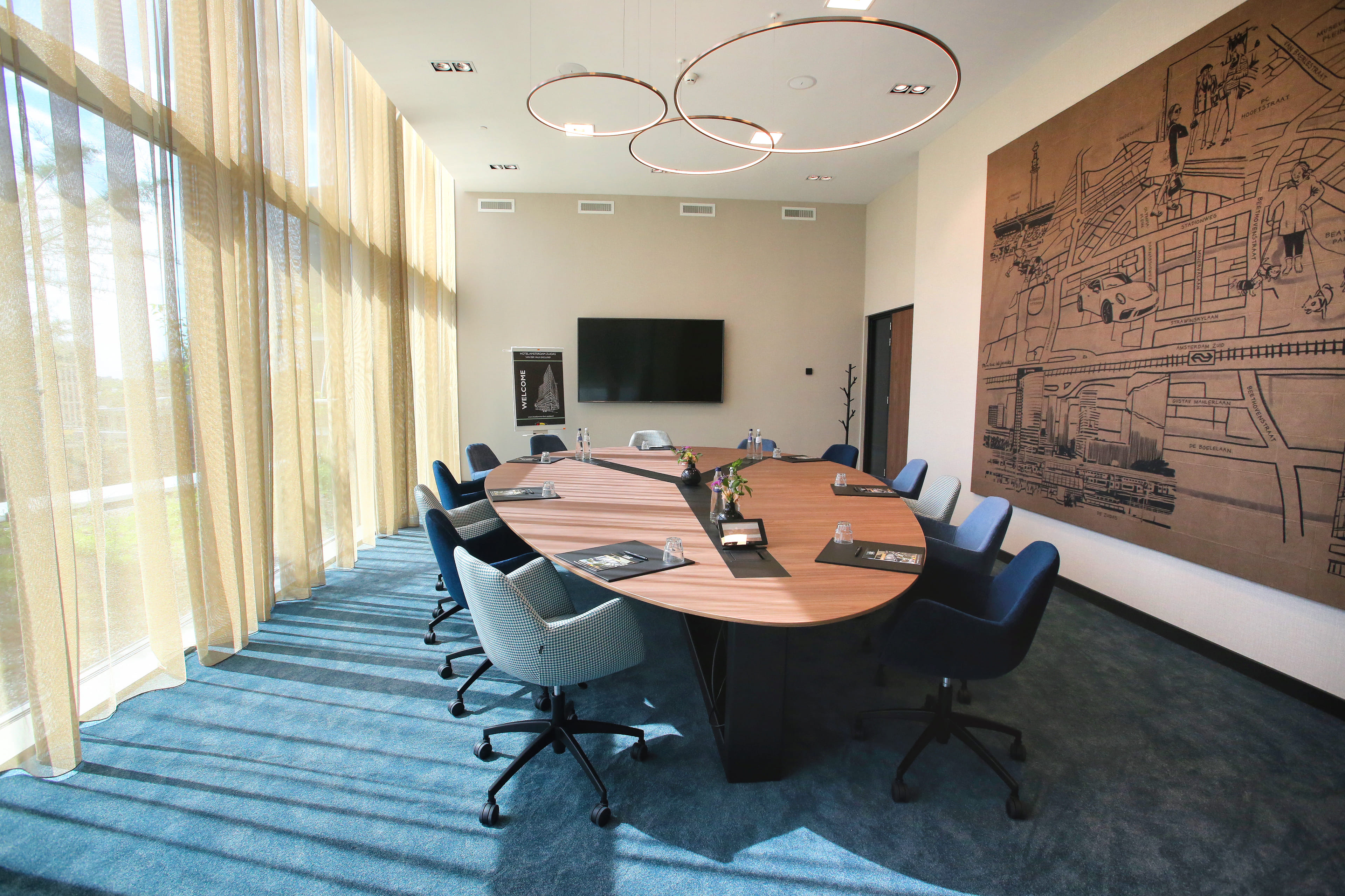 Hotel Amsterdam Zuidas is located on the Zuidas, next to Amsterdam RAI Convention Centre. Via the North/South line within 10 minutes in the centre of Amsterdam. There are 234 luxurious rooms and suites. All rooms are provided with the newest equipment and large floor-to-ceiling windows with an spectacular panaromic view. There are 9 multifunctional meeting rooms which are fully equiped with state of the art meeting techniques: high-speed WiFi-, laser beamer, meeting supplies and individual adjustable light and climate control.