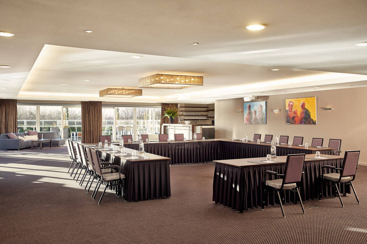 This very spacious room (216 m²) is located on the ground floor, has a view over the Oude Maas river and has its own terrace and bar. There is plenty of daylight and also the possibility to darken the room. The space is multifunctional; any arrangement is possible. The room is ideally suited for seminars and conferences, with a maximum capacity of 240 people theater style. This room, in combination with the adjacent "Waal", is often used for receptions, weddings or staff parties. Free Wi-Fi is available in all rooms.