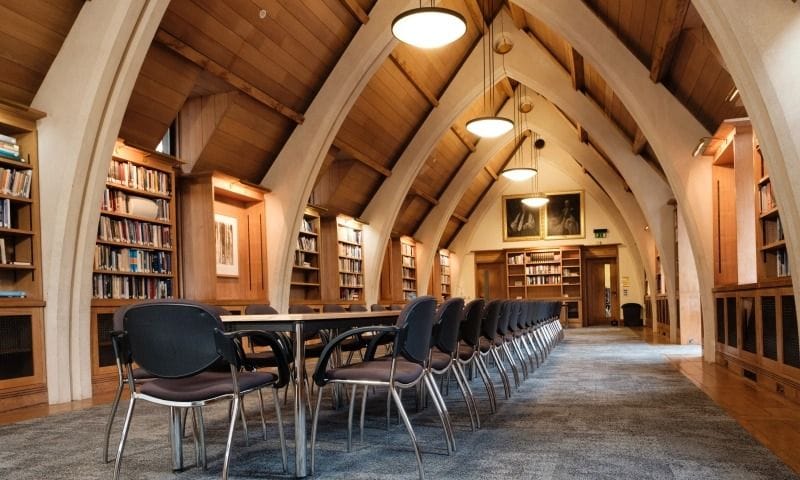 **This impressive Space with its Gothic architecture and magnificent views of the Thames makes for the perfect meeting room or drinks reception.** The Garry Weston Library is the jewel in the crown of the Southwark Cathedral suite of riverside rooms. With dramatic arches inspired by the Gothic architecture in the Cathedral, unique features throughout and magnificent views of the Thames, this multi-functional space is suitable for presentations, meetings and receptions. The Library can accommodate up to 120 people for a reception, banqueting for 70 or conference/lecture space for up to 80 people. Fully accessible with plenty of natural daylight, this flexible and versatile room can be set-up as you require. There is a built in PA system and integrated AV tech with flat screen TV and WI-Fi allowing video conferencing and live streaming for all your meeting and events needs.