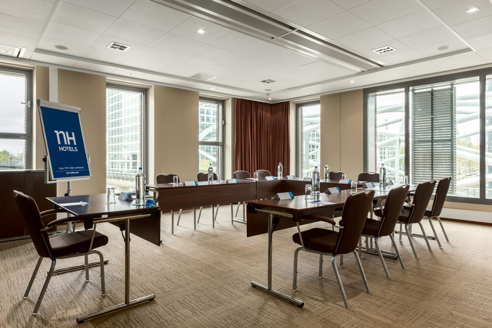 The Eindhoven 2 is one of the three Eindhoven areas. These rooms are a bit smaller, so very useful for any smaller meeting up to 30 persons. These rooms can also be combined and the area will be up to 107 square meters. The surface of this space is 36m2 and the ceiling height is 2.70 meters. The room is equipped with free Wi-Fi, disable access and natural daylight. Special Meeting & Events services: Our Event Planner will work closely together with you in order to plan the right menu for you special event and to meet your needs and wishes. About NH Den Haag: the hotel is easy accessibly by public transport and by car. It is located in the Southern part of The Netherlands and just a 10-minute walk away from the city center of Den Haag. There is an on-site parking area, price is €22,50 for a full day. The hotel restaurant called ‘Verne” is located on the first floor with a inside terrace. Furthermore, This location features 14 meeting rooms. The larges room has the capacity for 650 persons (theater set-up) and around 1.000 guest for a cocktail setup. And the hotel is in one building with The World Trade Center. Feel Safe at NH: NH Hotel Group launched Feel Safe at NH in collaboration with the SGS. As part of this, 10 protocols have been established for the safety of guests, participants and employees. With this, we guarantee that you can organize your meeting or event in all health and safety. Our F&B services are also adapted to the current situation. The loaded meeting room capacity is the standard one. In case that any COVID restriction or regulation applies to your request, the selected hotel will apply the corresponding restrictions during the quotation process. Based on destination, size and date of the event.