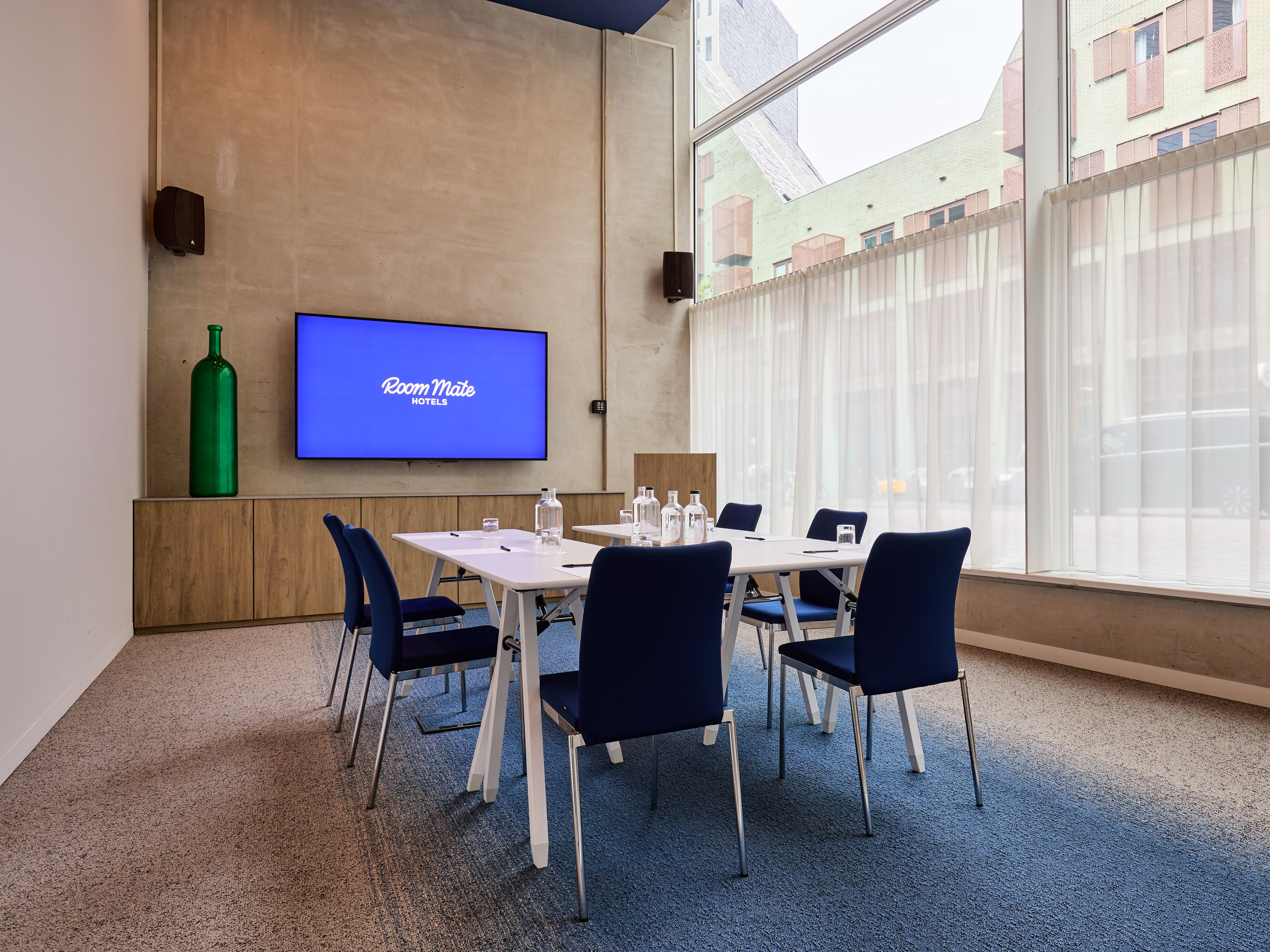 Discover the charm of our exclusive meeting room located in the heart of our hotel! With large windows that let in ample natural light and high ceilings creating an airy ambiance, our inviting space is the perfect venue for your business gatherings. Situated on the ground floor, it offers convenient accessibility while ensuring a tranquil and productive environment.