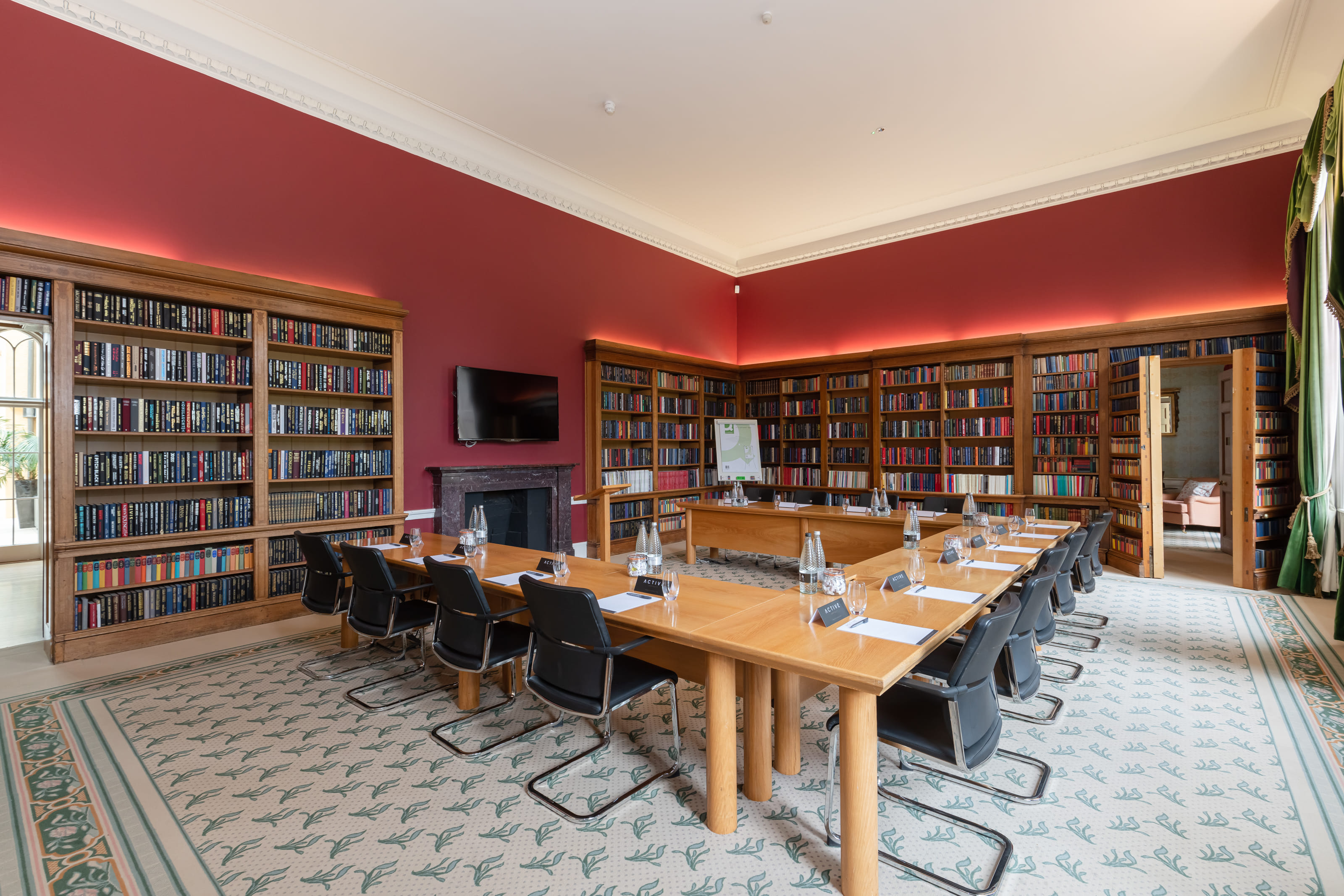 **Within the historic manor house is the stunning library.** Following a 1 Million pound refurbishment, all the Spaces within the manor house have been beautifully restored and the Library is a very unique and special meeting and events room. Set up in a 19 person U-shape with a television and wireless presentation from phone, tablet or laptop using Clickshare. The library has a fantastic feature of a hidden doorway within a bookcase that leads to a relaxed lounge for your delegates to enjoy a change of scenery or works perfectly as an office to be on hand throughout the meeting without having to be in the main room. With natural day light and in room equipment all the meeting rooms at Ditton Manor are ideal for your meetings, training, Christmas parties or private events. * 16 meeting rooms across the stunning Manor House, modern Southgate Conference Centre and Garden Marquee with 1050 delegate capacity in Theatre setup * Set within 55 acres of tranquil gardens and lawn areas perfect for team building and outdoor events * Excellent location 3 minutes from J5 of M4 and 5 minutes from J15 M25 * Local train stations with direct connections into London Paddington in 16 minutes and Waterloo in 29 minutes * Close to Windsor and 5 miles from Heathrow * CCTV and onsite security * Complimentary parking for over 250 vehicles