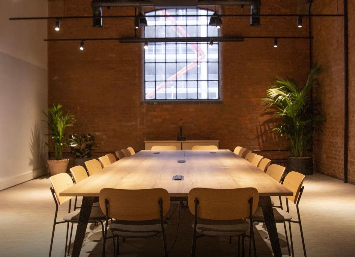 **Industrial-style workshop Space in Bonded Warehouse which offers a unique backdrop to various events including conferences, board meetings, workshops, product launches, presentations, pop-up galleries and any filming opportunities.** Highlights include: - Boardroom seating for 12 - Crestron Video Conferencing System and wireless display connectivity - Wheelchair accessible - Complimentary refreshments and printing facilities - Fully air conditioned - Walking distance from Spinningfields and Deansgate train station - Iconic location previously part of Granada Studios and originally a railway depot for goods travelling between Liverpool and Manchester