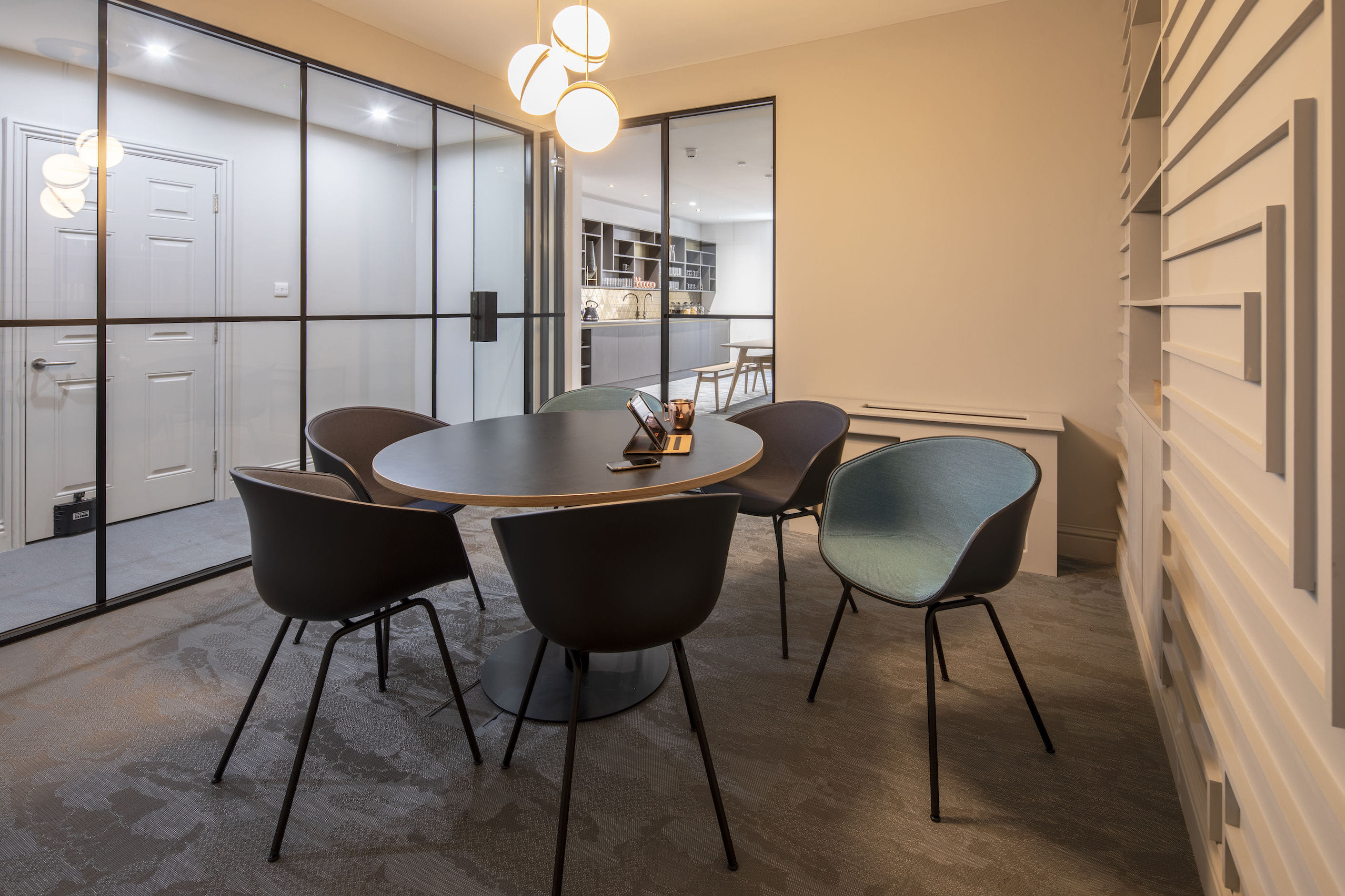 **Soho Square Meeting Room at Thirty-Six Soho Square is a stylish meeting room for hire.** Located in London’s thriving media capital, Thirty-Six Soho Square is a beautiful period building, which has been fully refurbished to Venetia's exacting standard. The meeting room at Soho Square is unbranded and has a contemporary, boutique feel with clean, crisp lines and a modern edge. It seats eight people comfortably, lending itself to important client meetings, training days, board meetings or even just a team catch-up with colleagues. It also has free wifi and is equipped with a television and whiteboard. Booking the meeting room couldn’t be easier; the meeting room hire charge is a one-off payment, which you can book by the hour, half day or full day. As part of the package, you will receive complimentary tea, coffee and biscuits. There is also a catering service available upon request. Upon arrival, clients and guests are greeted by our onsite reception team who are there to assist you throughout your meeting, allowing you to focus on what is important - the meeting.
