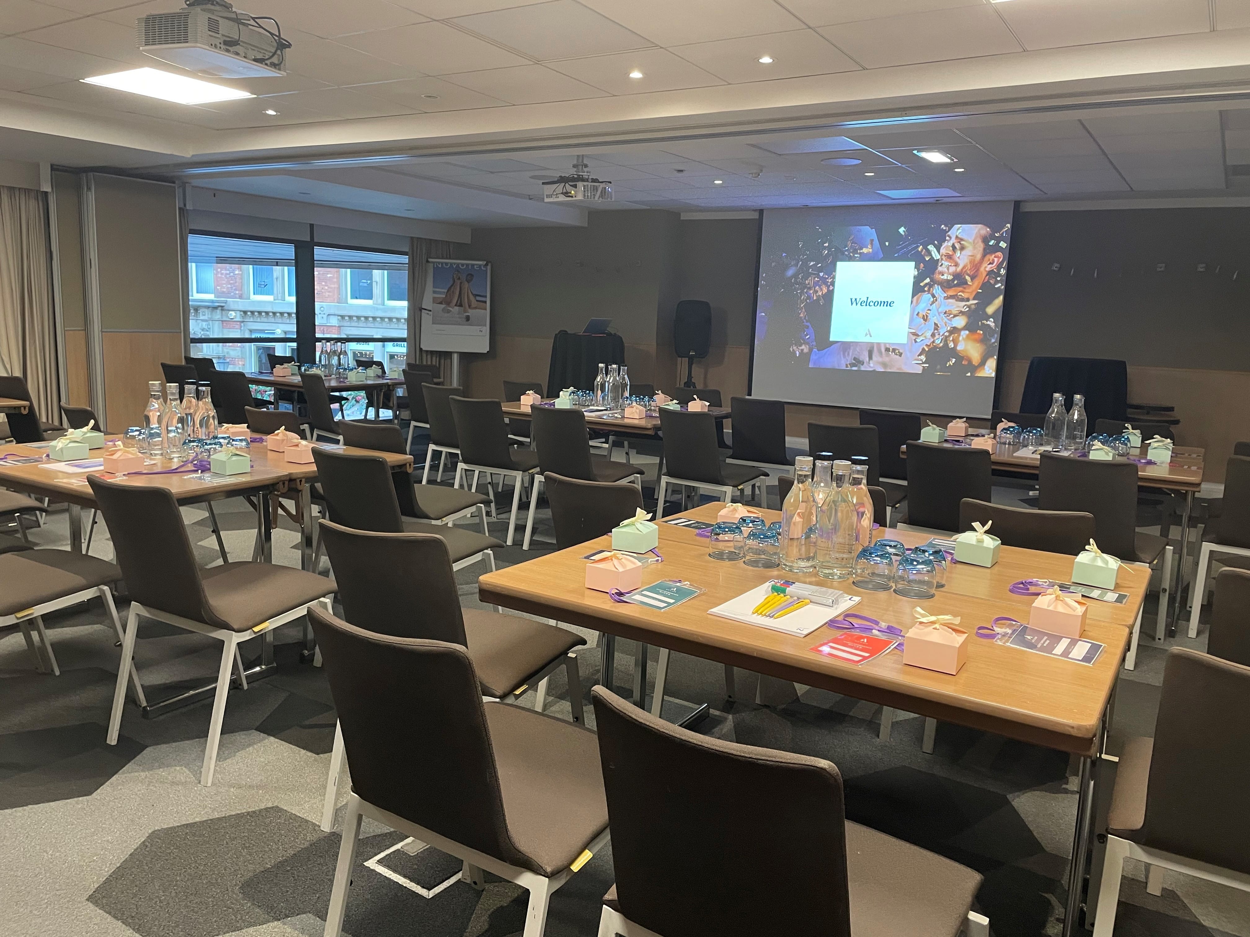 Located at Novotel Manchester Centre and right at the heart of all major transport links to the city, the Rylands Suite is ideal for large meetings ranging from 10 to 100 Guests. The suite is equipped with free wireless internet, projection capabilities, natural daylight and air conditioning and offers flexible layouts as well as it's own breakout area overlooking the City Centre.