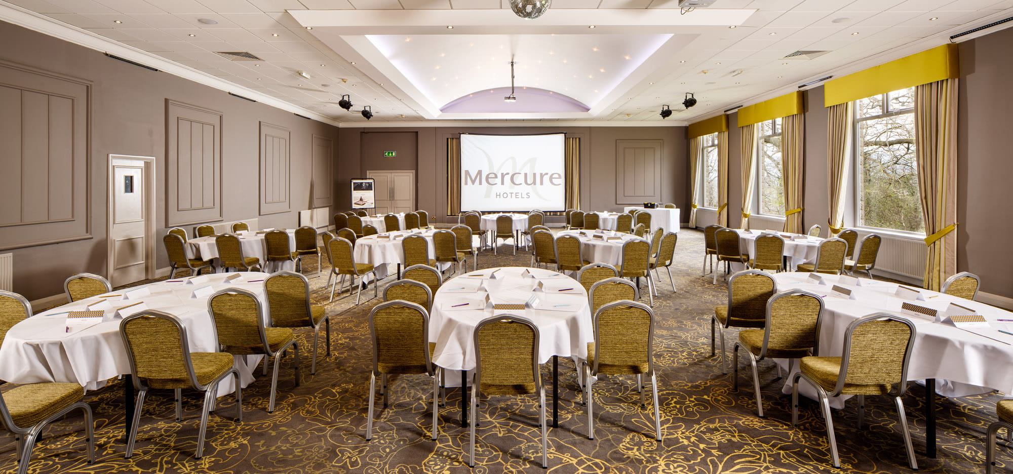 Holds up to 300 Guests in Theatre layout Ideal for larger groups Beautiful views over the gardens and River Aire Blackout blinds Fully air-conditioned Fully wheelchair accessible 18.3m x 12.75m