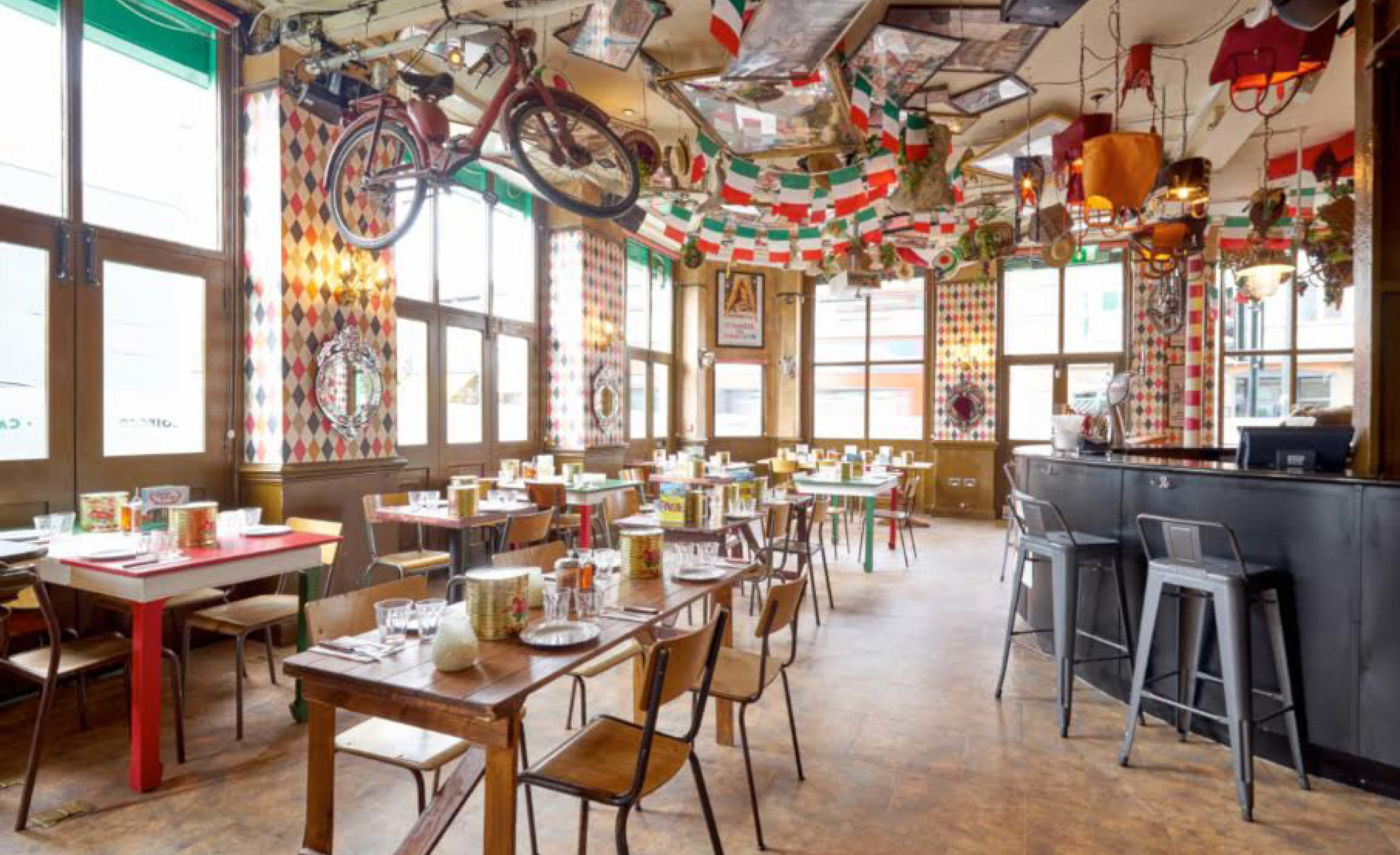 Bunga Bunga is a tongue in-cheek bar and pizzeria serving authentic cocktails and cuisine in a vibrant space dedicated to Italy's finest. The ground floor houses a striking gondola-shaped bar with the canals of Venice depicted in the wall behind. Bunga Bunga provides an innovative drinks menu, including a signature sharing cocktail in the form of The Colosseum, a Fiat 500 & a horse's head. The Pizzeria is separated from the bar by the stage in the shape of The Colosseum as well as a space for guests to indulge in karaoke. We can accommodate up to 90 guests for a sit down dinner or up to 200 guests for a standing drinks party.