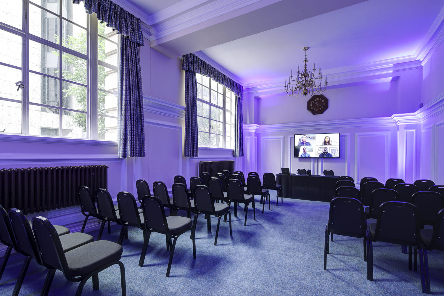 The bright and inviting Dinsdale Young Room is located on Level 1, and takes its name from the Reverend Dinsdale Young – the Methodist Superintendent Minister between 1914 and 1938. It is ideally suited for holding seminars, meetings, and drinks receptions thanks to its flexibility, and can cater for up to 50 people in theatre style. Its high windows provide plenty of natural daylight, with optional blackout facilities also available. The Dinsdale Young Room is also adjacent to a syndicate room, which you can hire to use as a convenient catering, cloakroom or registration area, or simply to provide a breakout area for your delegates.