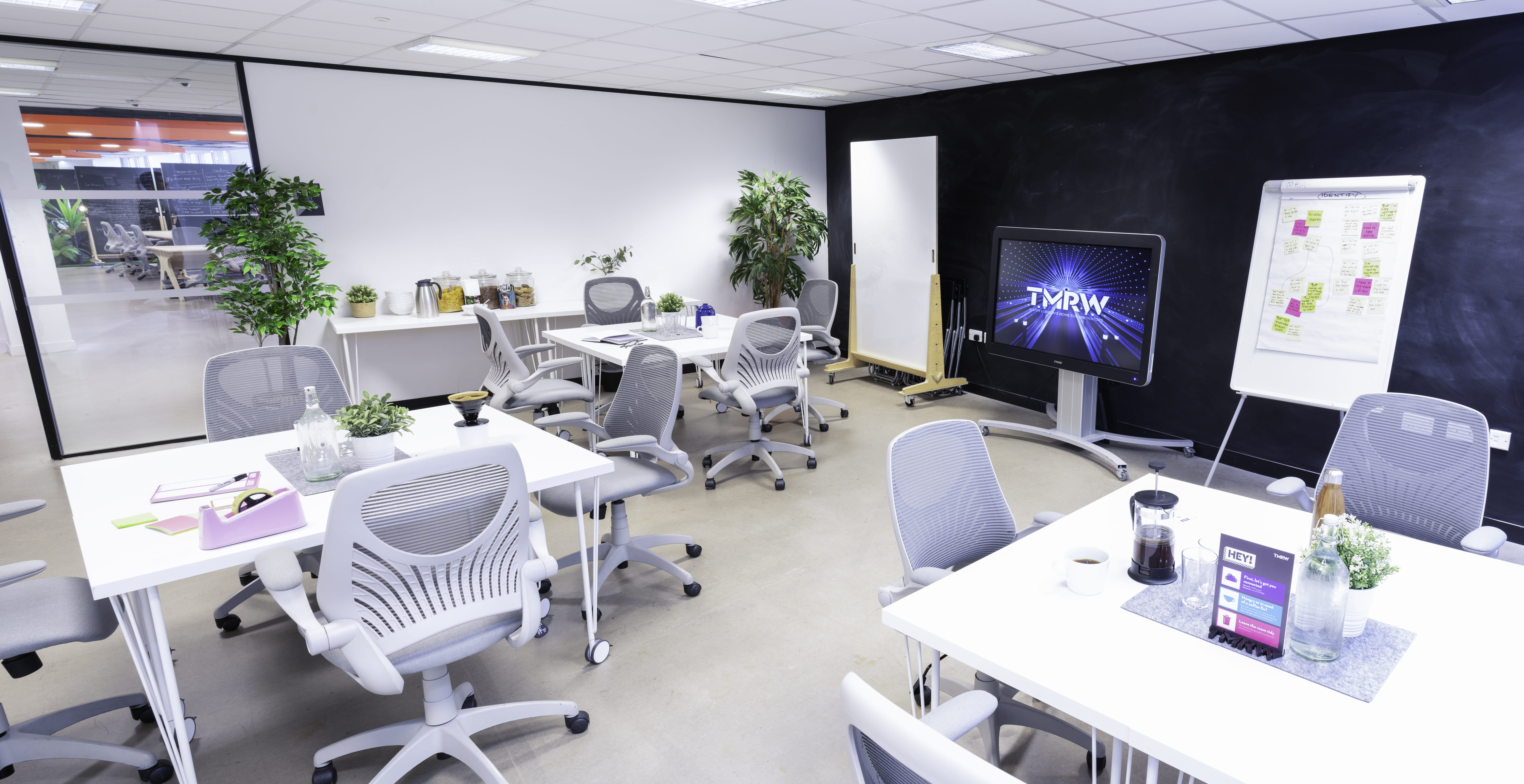 Need a space in which to inspire your colleagues? Whether it’s for brainstorming, interactive learning, problem-solving or relationship building, our light-filled meeting space Floppy Disk is sure to fit the bill. Designed for optimal functionality, the space can be tailored to your needs with movable tables, a large monitor on wheels, super-fast WiFi and numerous presentation aids on hand. In the past, Floppy Disk has hosted product launches, workshops, interactive meet-ups, board meetings and even a chocolate making team-building session! The room is rented by the hour and includes fibre-optic, ultra-fast WiFi, 55” Smart TV + HDMI/VGA cable, portable whiteboard, chalkboard wall & filtered water. Capacity: up to 20 people boardroom style, 487sq ft/45sq metres.