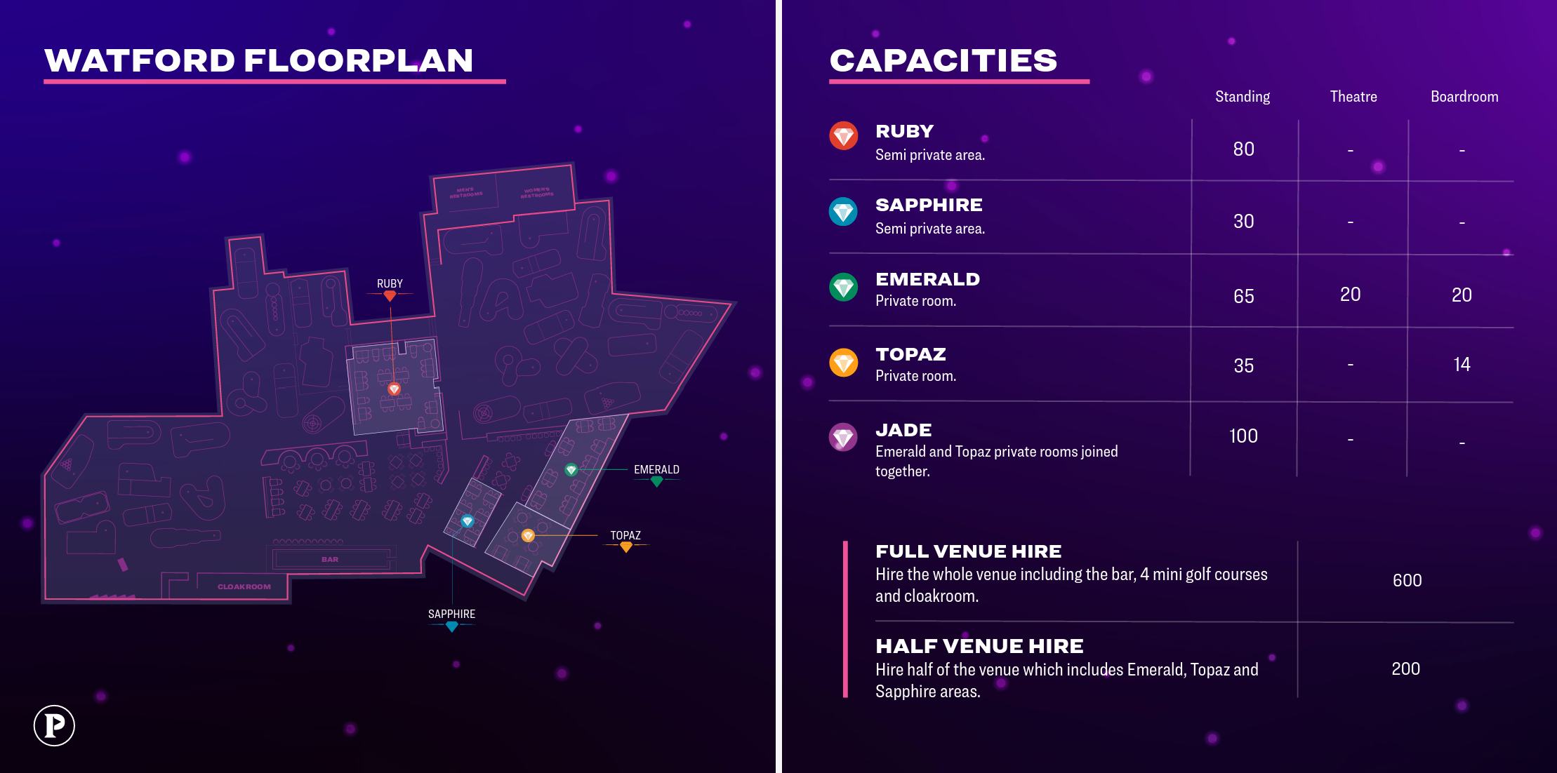 Equipped with a large screen, our private room can be arranged with boardroom, theatre and cabaret style set-ups. Emerald can accommodate up to 55 guests for a standing event or 60 guests for a presentation in theatre style. Choose from our morning, afternoon and full day packages to enjoy delicious food and keep topped up with all the refreshments you need, to make your meeting memorable.