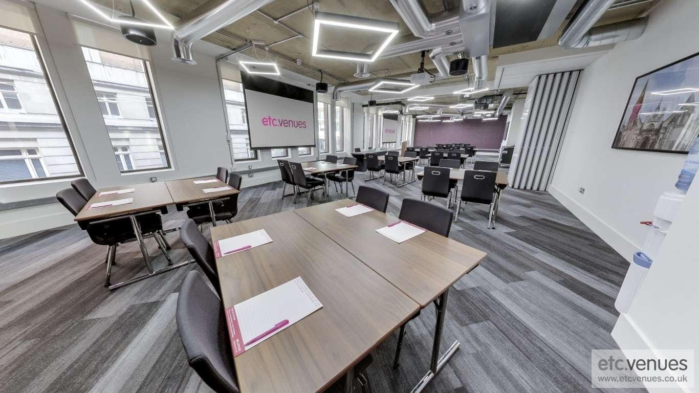 One of 3 Suites in Chancery Lane that can accommodate up to 80 square cabaret. This is the only suite that benefits from a private lounge with coffee stations. The room benefits from 2 x LCD Projector & Screens. Located in City of London, etc.venues Chancery Lane is a vibrant and contemporary meeting and event space. Spanning 28,000 square-feet, the location offers 28 meeting rooms across five floors, allowing for multiple programs to take place concurrently and making it ideal for board meetings, corporate trainings, away days, and workshops. etc.venues Chancery Lane is set within the city's legal district and boasts a contemporary design including an open staircase, playful ""Reclining Judge"" mural as a nod to the surrounding area, and central dining area. The location offers select branding and signage opportunities, in-house communal catering-of-the-day, in-room plug-and-play technology, and shared hospitality resources. etc.venues Chancery Lane is easily accessible via public transportation.
