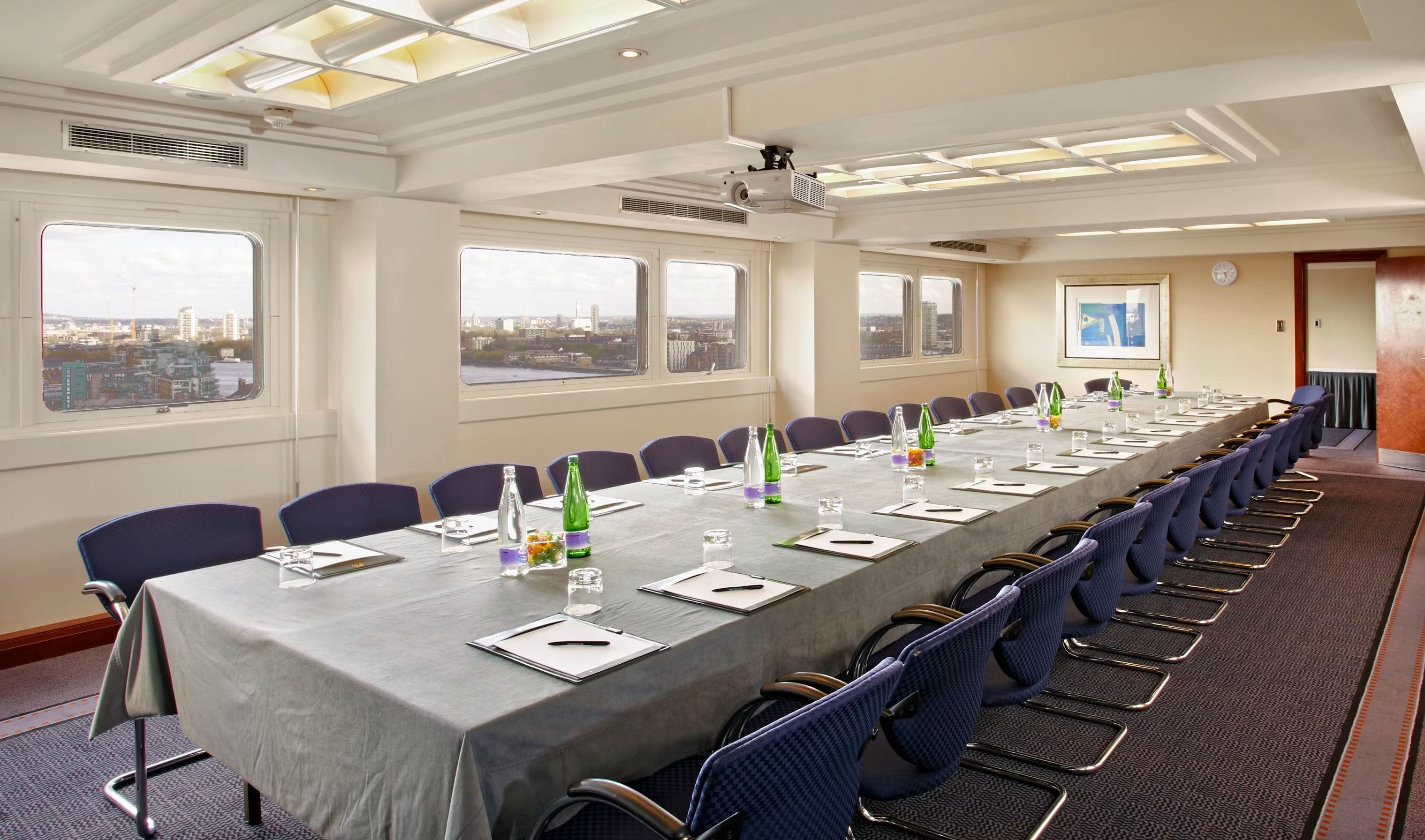 The Mortimer Room is ideal for board meetings, interview panels, one-to-ones or private dining. The meeting room Mortimer is 6.55 Metres wide & 7.24 Metres long with a height of 2.74 Metres. The room can take up to 14 delegates Board room. It has natural daylight, air-conditioning and a beautiful view over River Thames. All of our meeting rooms have a dedicated event host accommodating all of your event requirements. The Tower hotel offers complimentary WI-FI, pens, pads & sweets on the table as well as projector and flipchart. We can arrange tea, coffee and snacks as well as lunch if requested. --Please note this space fee is based on a venue hire. Please message us if you need the room longer than listed and we can use bespoke pricing to accommodate this--