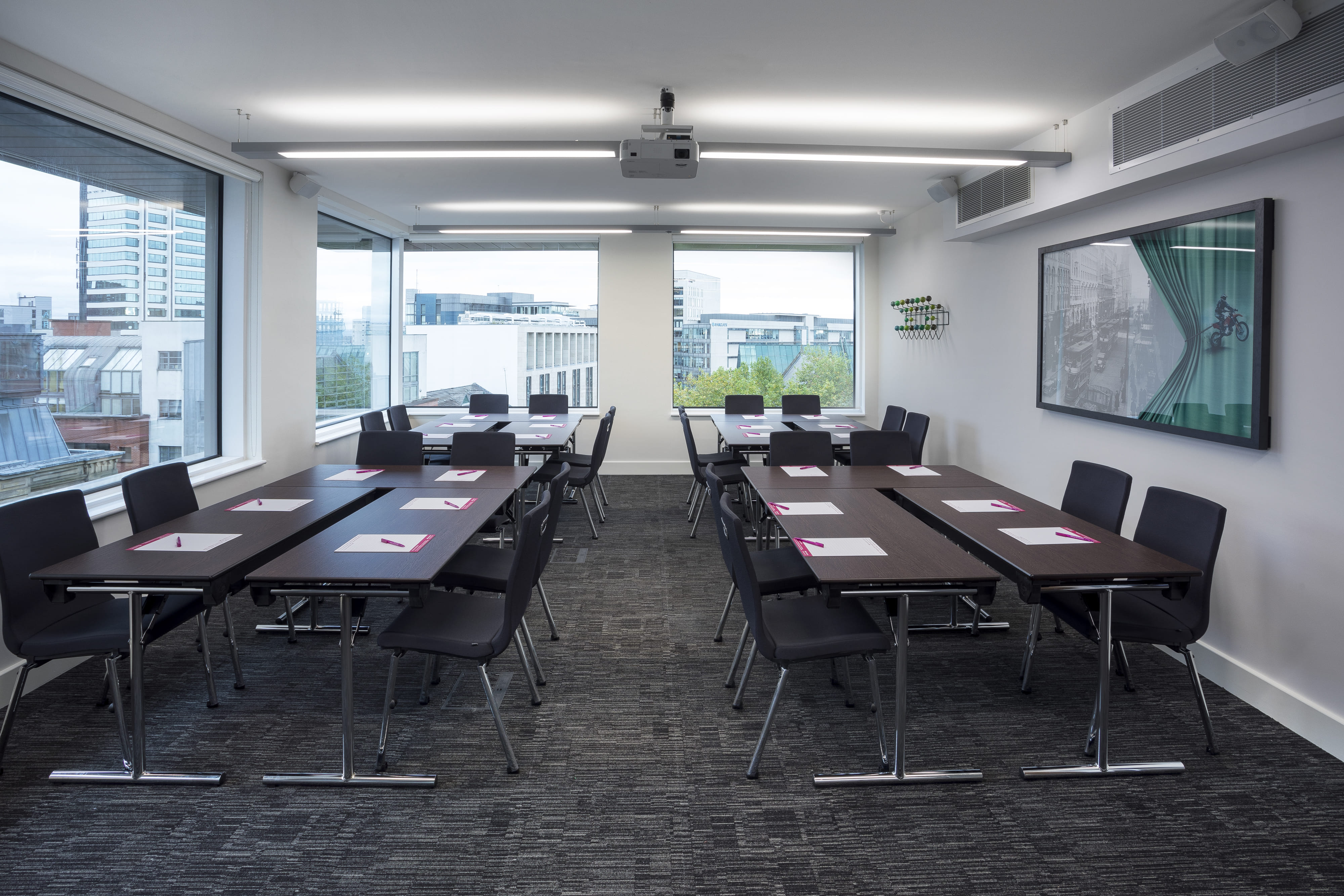 Located on the eighth floor with great views of the city, this room is bright, modern and airy. Measuring 41m square and can accommodate up to 24 delegates in a cabaret layout or 20 delegates in a boardroom layout. AV is inbuilt and includes; a ceiling-mounted projector and screens with speakers, WIFI and audio speakers. etc.venues Manchester, Piccadilly is located on the eighth floor of a vibrant mixed-use building in the city centre. The venue offers 15 meeting rooms of various sizes across 19,000 square-feet and has a maximum capacity of 300 guests. This location is ideal for corporate trainings and the self-contained private event wing is best suited for small conferences or internal meetings. The design of the space reflects the vibrance of Manchester with colorful furnishings and eclectic artwork throughout. etc.venues Manchester, Piccadilly offers select branding and signage opportunities, in-house communal catering-of-the-day, in-room plug-and-play technology, and shared hospitality resources.