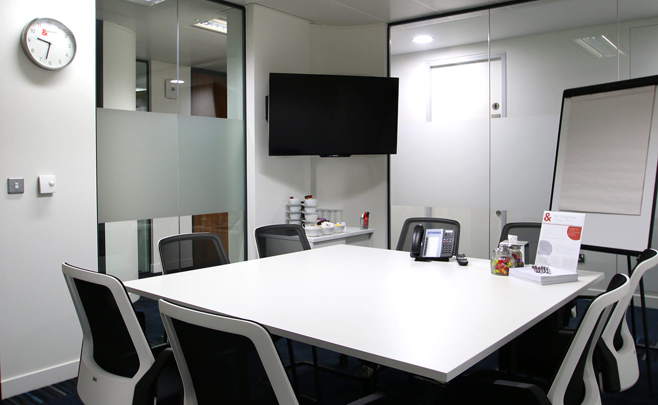 Seats up to 6 people AV equipment included Unlimited tea, coffee and water included Secure WiFi Telephone Catering options available