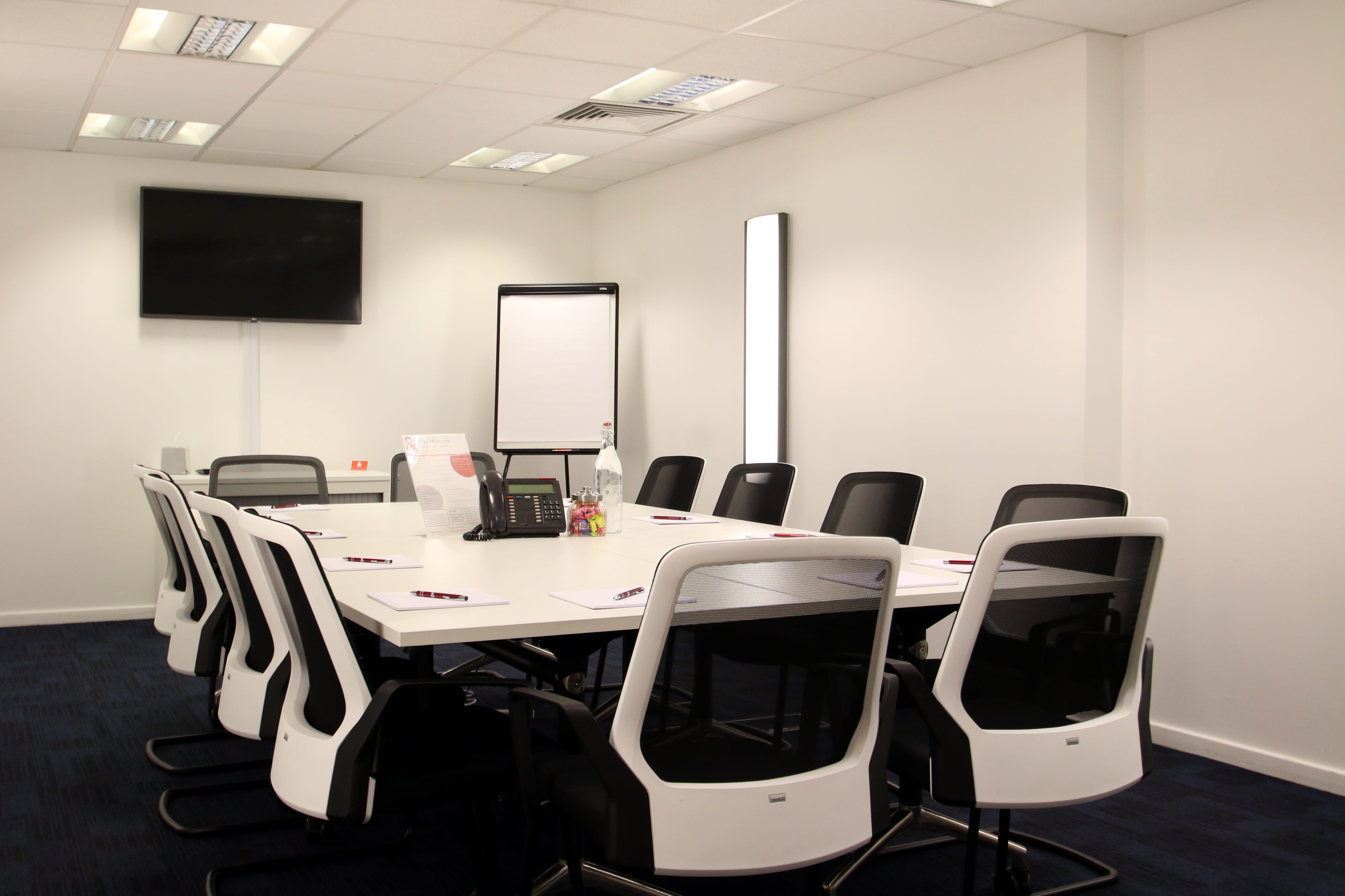 Seats up to 12 people AV equipment included Unlimited tea, coffee and water included Secure WiFi Telephone Catering options available