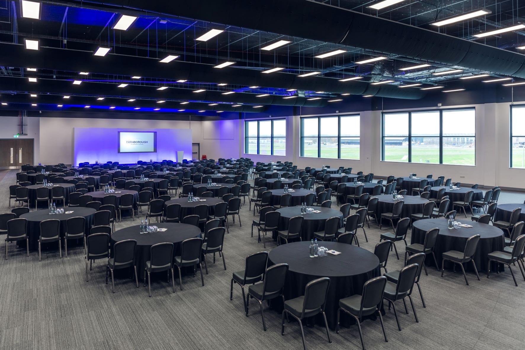 Our largest conference space offers spectacular runway views and an abundance of natural daylight, ensuring an ideal setting for a variety of events. With a capacity of up to 900 guests theatre style or 700 banqueting, this versatile environment is ideal for large conferences and dinners. The distinctive, adaptable space offering high ceilings and blackout facilities is located on the first floor and accessed via the East Foyer.