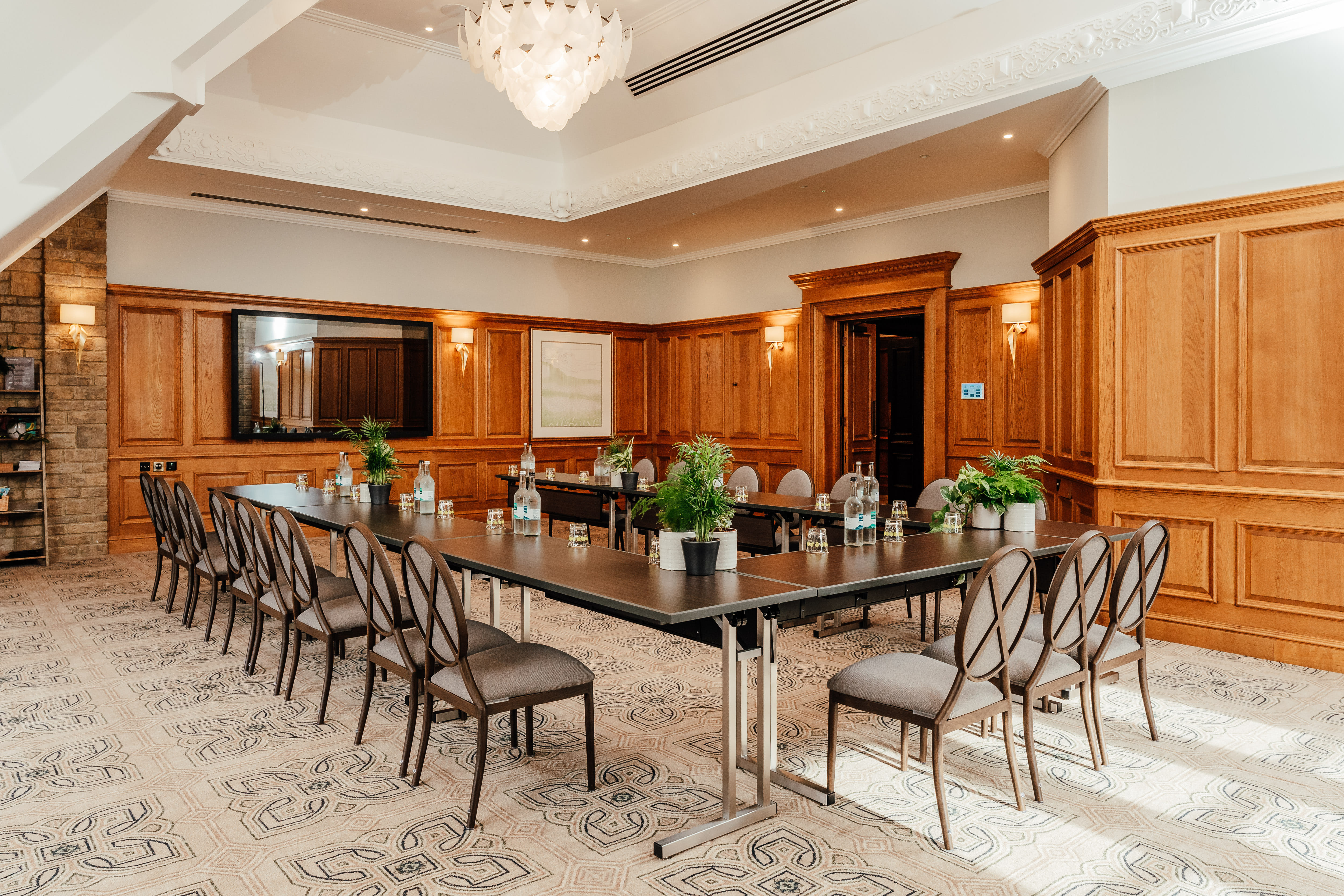 Goodwood is a spacious room with a large bay window overlooking the grounds. It offers natural light, high ceilings and sloping sides. It is very flexible, suiting meetings of all layouts as well as lunches or dinners.