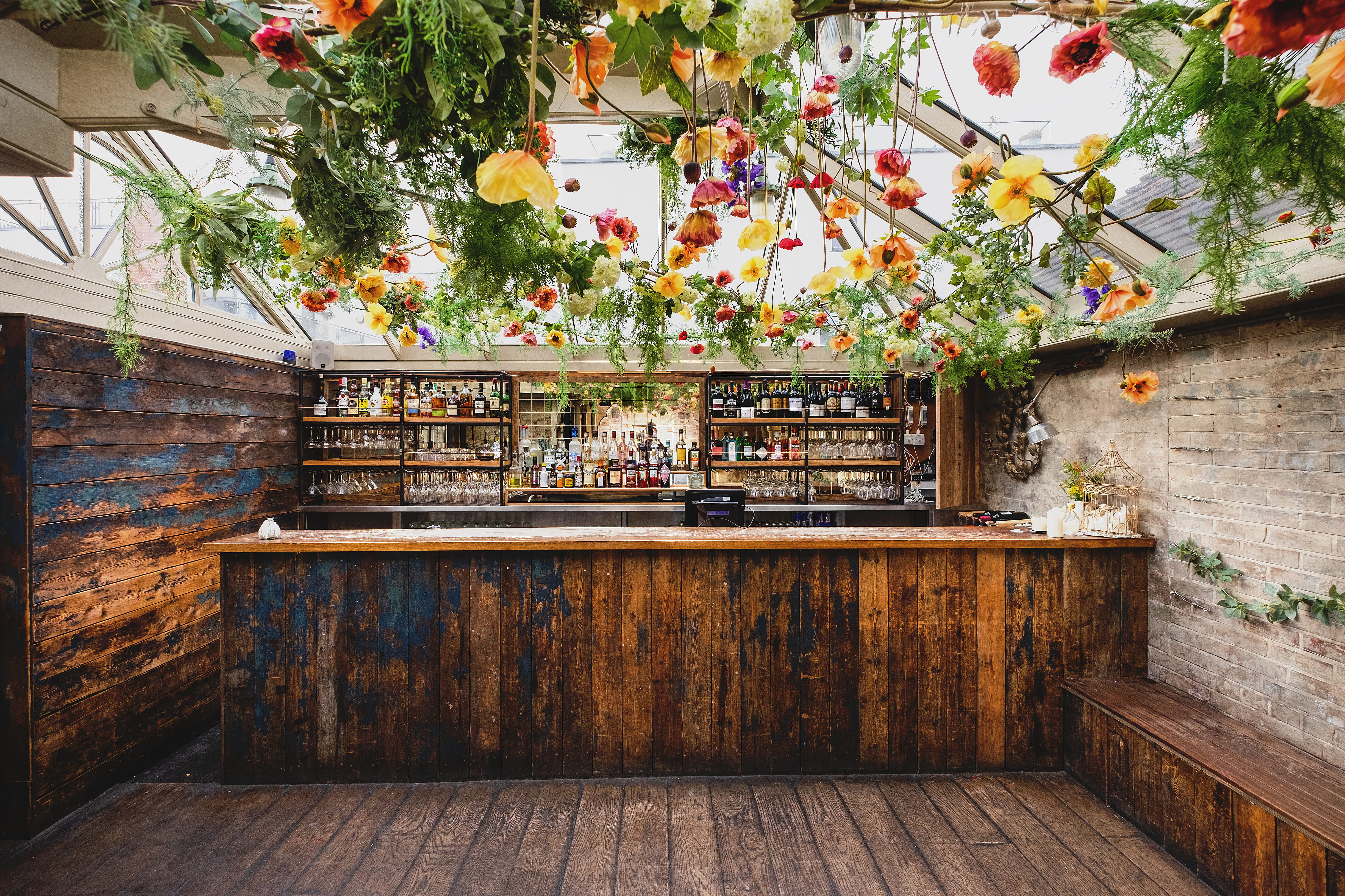 With its own private bar and huge glass ceiling, this stunning room is perfect for lazy summer lunches or drinks parties where you can dance the night away. Located on first floor. Can hold up to 18 people for a sit-down meal or up to 60 for drinks. Fully stocked private bar. Available 12pm-close. Minimum spends dependent upon day of the week.