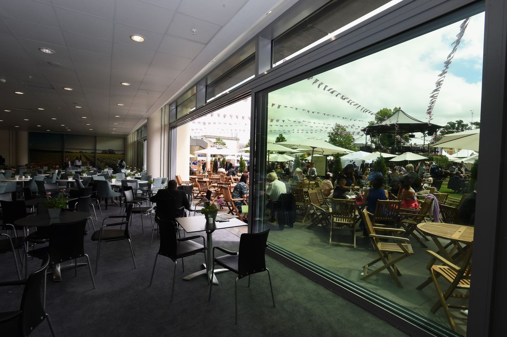 The Bandstand Suite, located on the ground floor to the west end of the iconic Ascot Grandstand, offers a flexible and contemporary event space. Often used in conjunction with the adjacent Bandstand Lawns, this suite is suitable for a wide range of event types. With plenty of natural daylight from its floor to ceiling windows, the Bandstand Suite benefits from an attached kitchen.