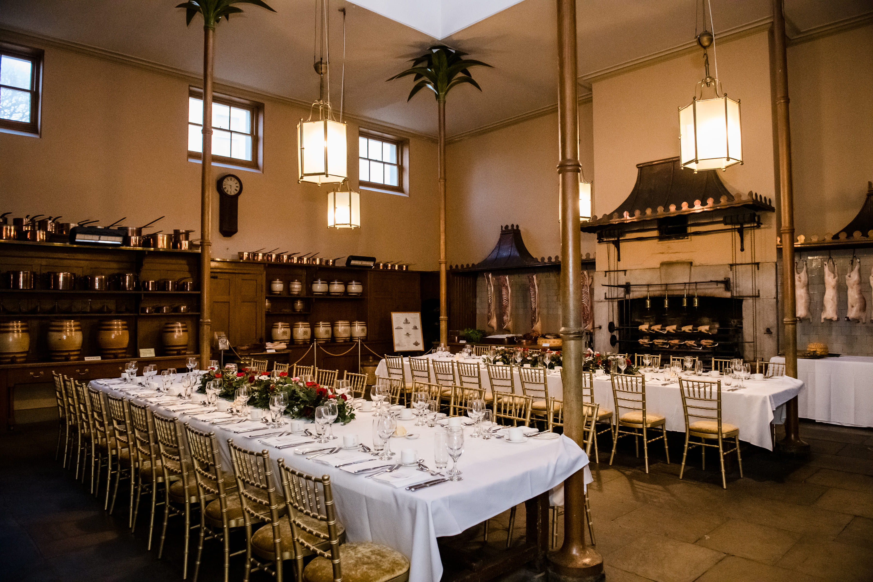 The Royal Pavilion’s notable Great Kitchen, sometimes also known as the ‘King’s Kitchen’ was modern for its time. George who was obsessed with food and dining conceived this kitchen and would often escort and impress his VIP guests with this room showcasing his new innovative facilities. It was truly one of the first ‘show kitchens’ in the world. This spacious room, taking its light from skylights on the roof was not without its own ‘taste of the Orient’, in line with the rest of the Royal Pavilion’s decorative scheme, it incorporates cast-iron columns ornamented with abundant painted copper palm leaves. This room now serves as a fantastic setting for a banquet style dinner or a drinks reception and it is said that George himself at times dined in this kitchen. The Royal Pavilion’s recipe for a great event? Drinks in the Great Kitchen, followed by a seated dinner in the state Banqueting Room.