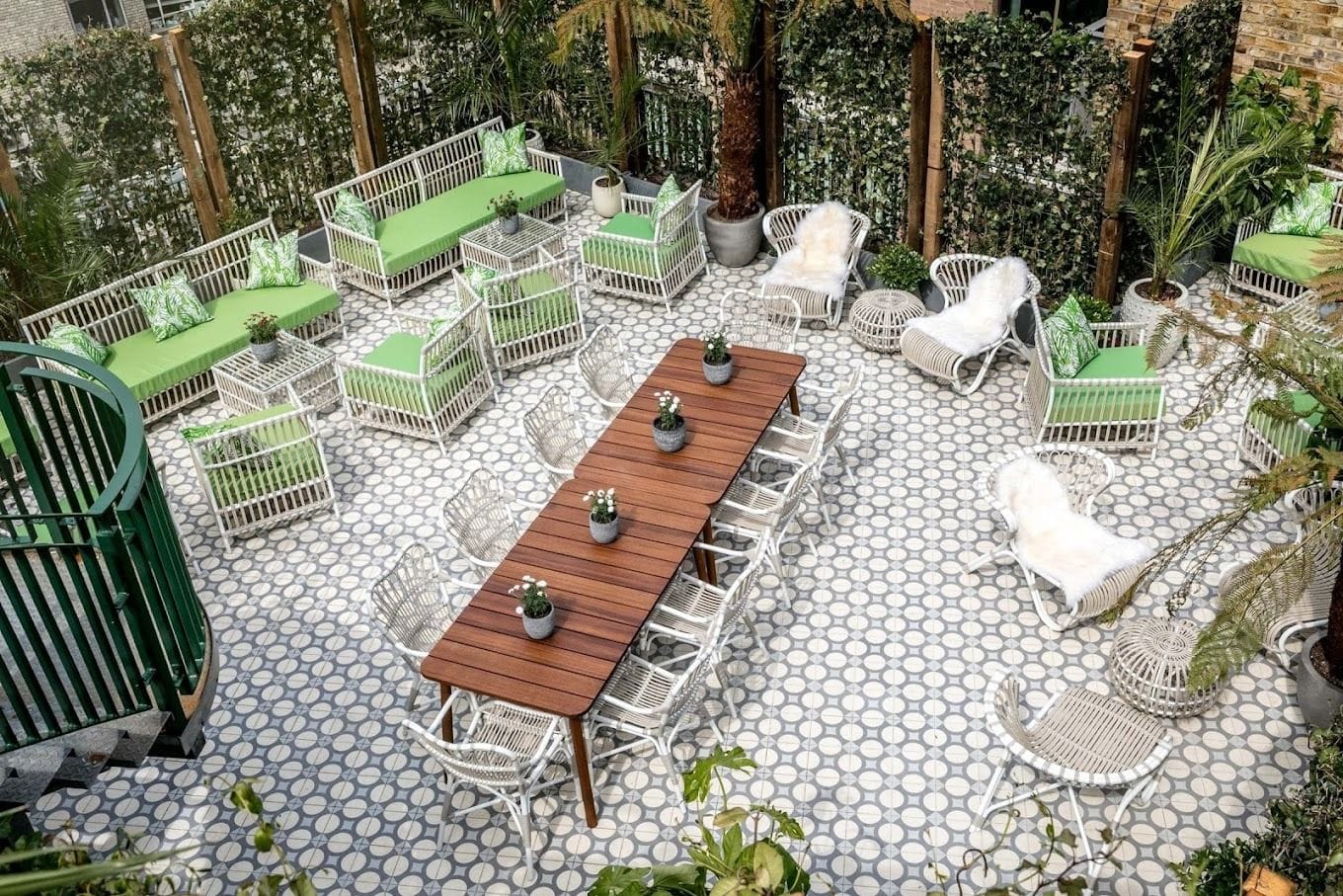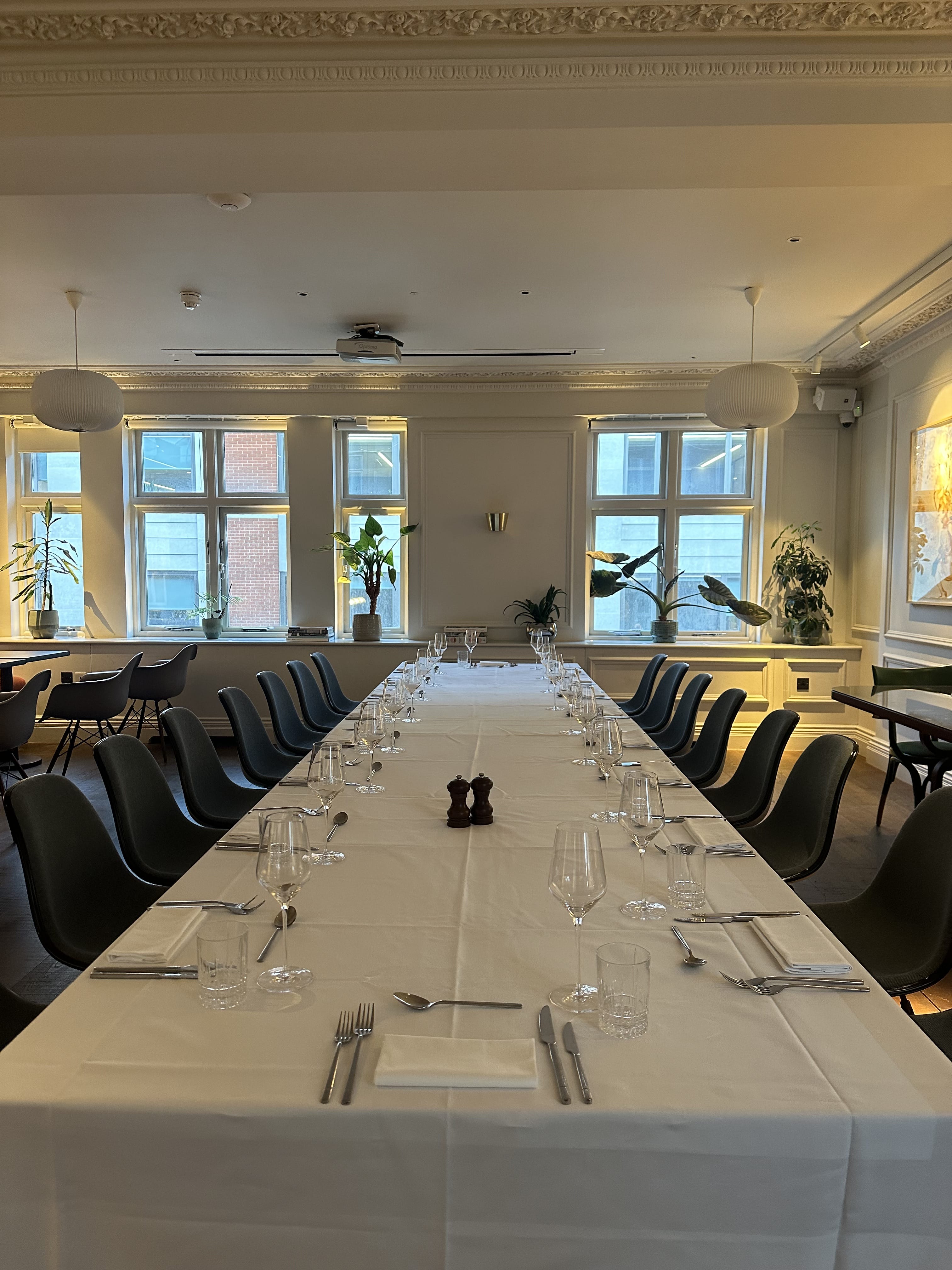 Acting as a co-working environment by day, our third floor is available for exclusive hire accommodating up to 30 guests for dinner. Even better, a dropdown screen and projector is provided, making it the perfect location for presentations, panel discussions and workshops too. 30 seated dinner, 30 workshop/round table discussion Evening only 6pm to 11pm £1,500 minimum spend + £1,000 room hire fee (extra £500 room hire fee for a midnight end) Please note the minimum spend is made up of food and beverage consumption, which includes VAT but excludes 12.5% service charge • Can be used for dining, presentations or meetings • Fully air conditioned • Built in projector and screen • Exclusive whole floor hire